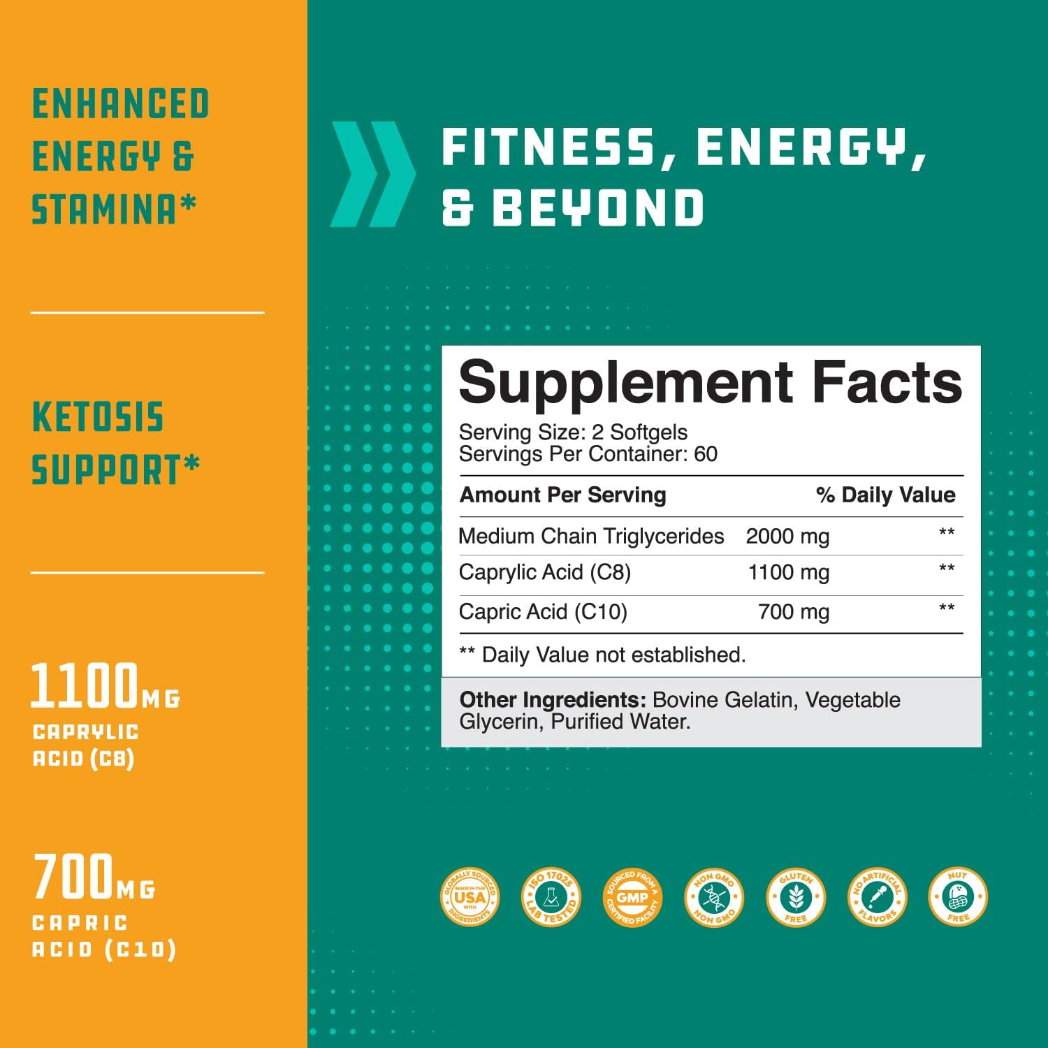 C8 MCT Oil Softgels - Medium Chain Triglycerids MCT Coconut Oil Supplement with Caprylic/Capric Triglycerides for Body Sculpting, Enhanced Energy & Stamina - Keto Supplements for Weight Loss - 120 Ct