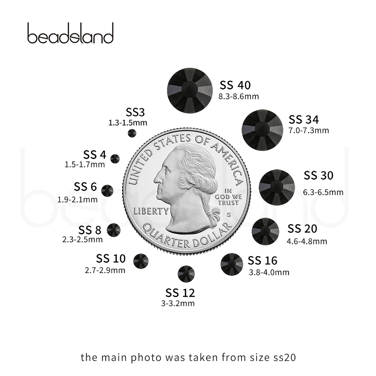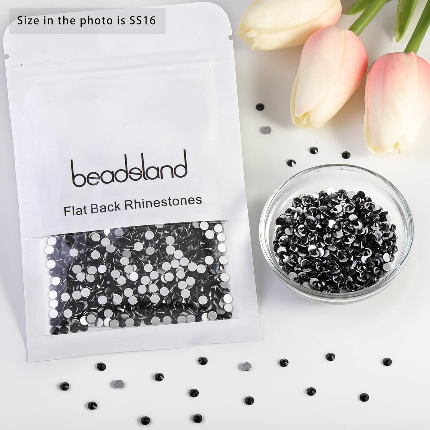 - Pack of 1440 Pieces Black Flatback Rhinestones SS16,Size 3.8-4.0mm.