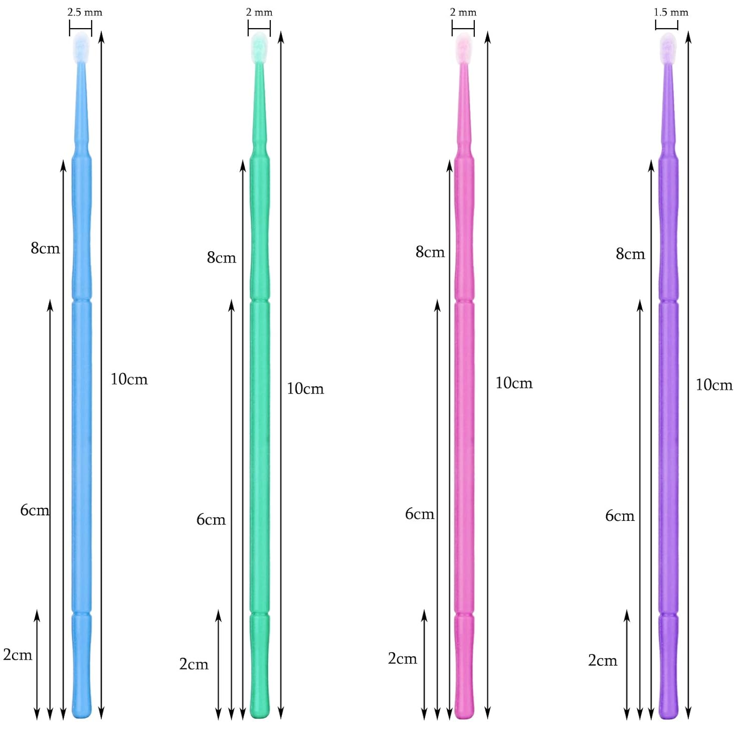 - Microfiber Tips And Plastic Handle; Length:10cm / 3.9”,Head Diameter: 2.0mm/Medium Size(Pink); Package Includes 500pcs Micro Brushes, And Every 100pcs In A Clear Plastic Bags Which Keeps Them Clean And Tidy.