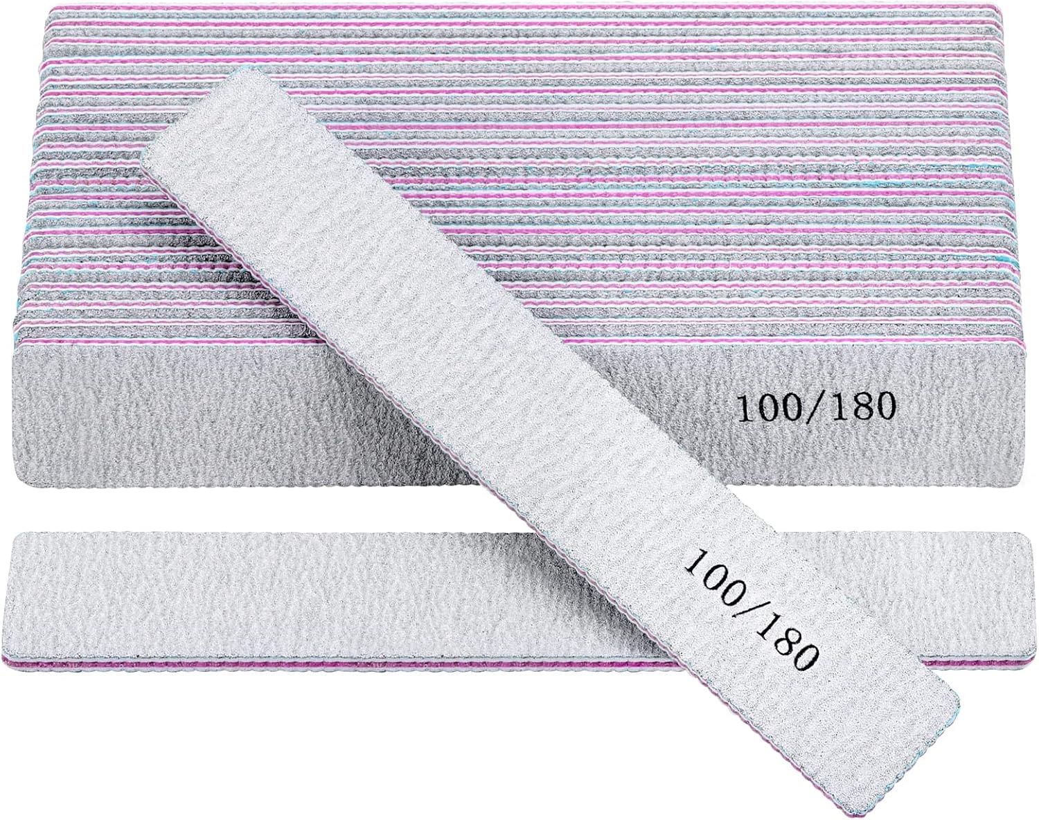 25 Pack 100/180 Grit Nail Files for Acrylic Nails, Rectangle Double Sides Emery Boards Fingernail Files Professional Nail Buffering Files