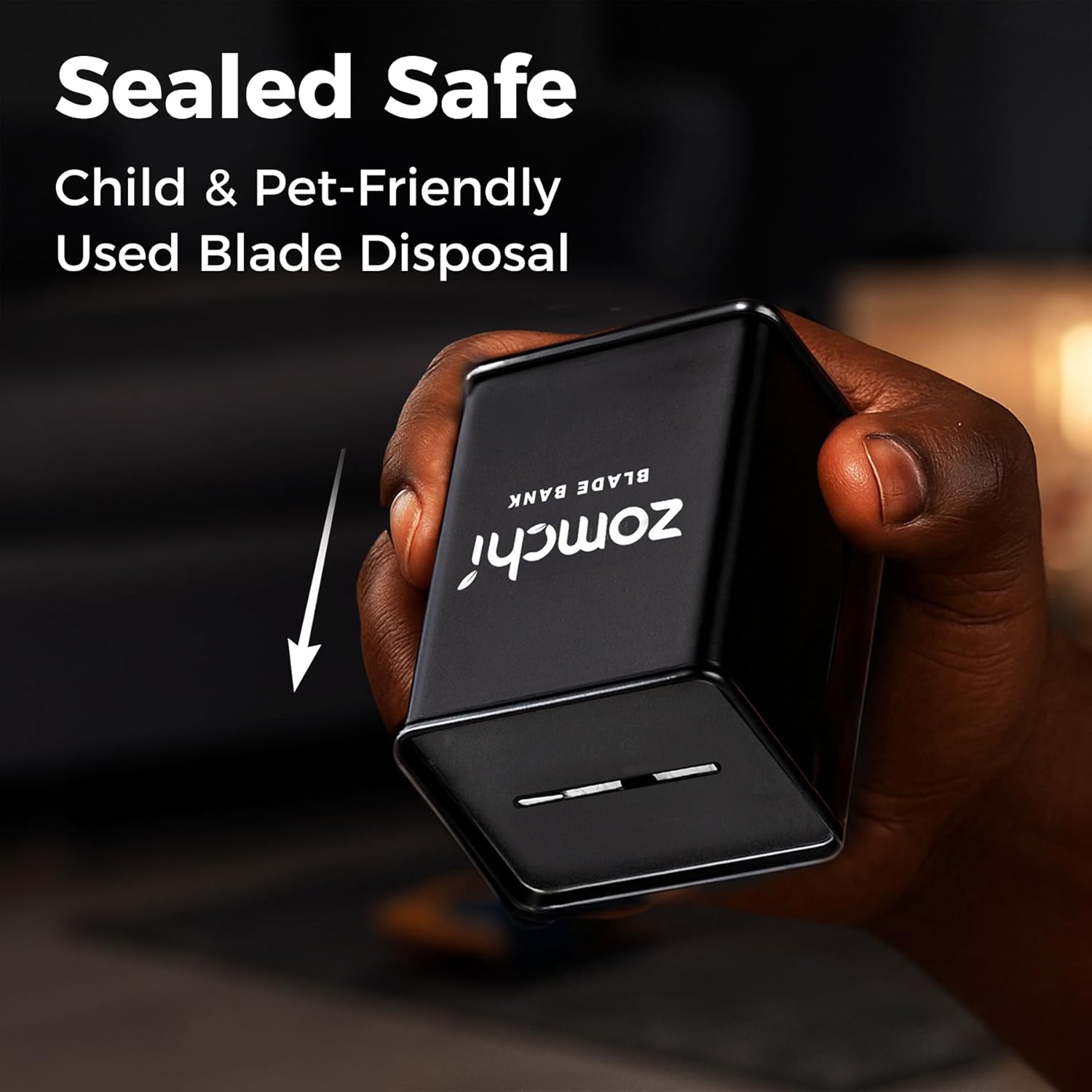 - SEALED DESIGN MUCH SAFER: ZOMCHI Blade Bank with its SEALED DESIGN, The used blades can only slip into the bank through the only Opening Gap at the top of the storage case, which could not only avoid escaping of razor blades and effectively protects users getting hurt when disposal the used razor blades, also can keep children safe although they have touched the Blade Bank in case.