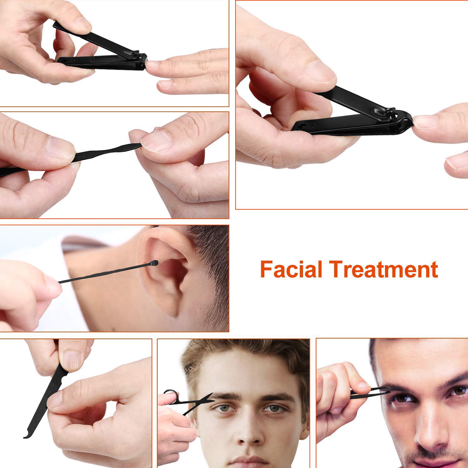 - 【Portable Lightweight】Mens Manicure set comes with 4.3 inches long, 2.5 inches wide and 0.78 high, manicure set comes with a portable synthetic leather case that is easily opened with a push of a button, You can put the nail art accessories sets tools into your fashion bags, lightweight and Handy when you go traveling. nail scissors nail clippers set fingernail & toenail black manicure set cutters.