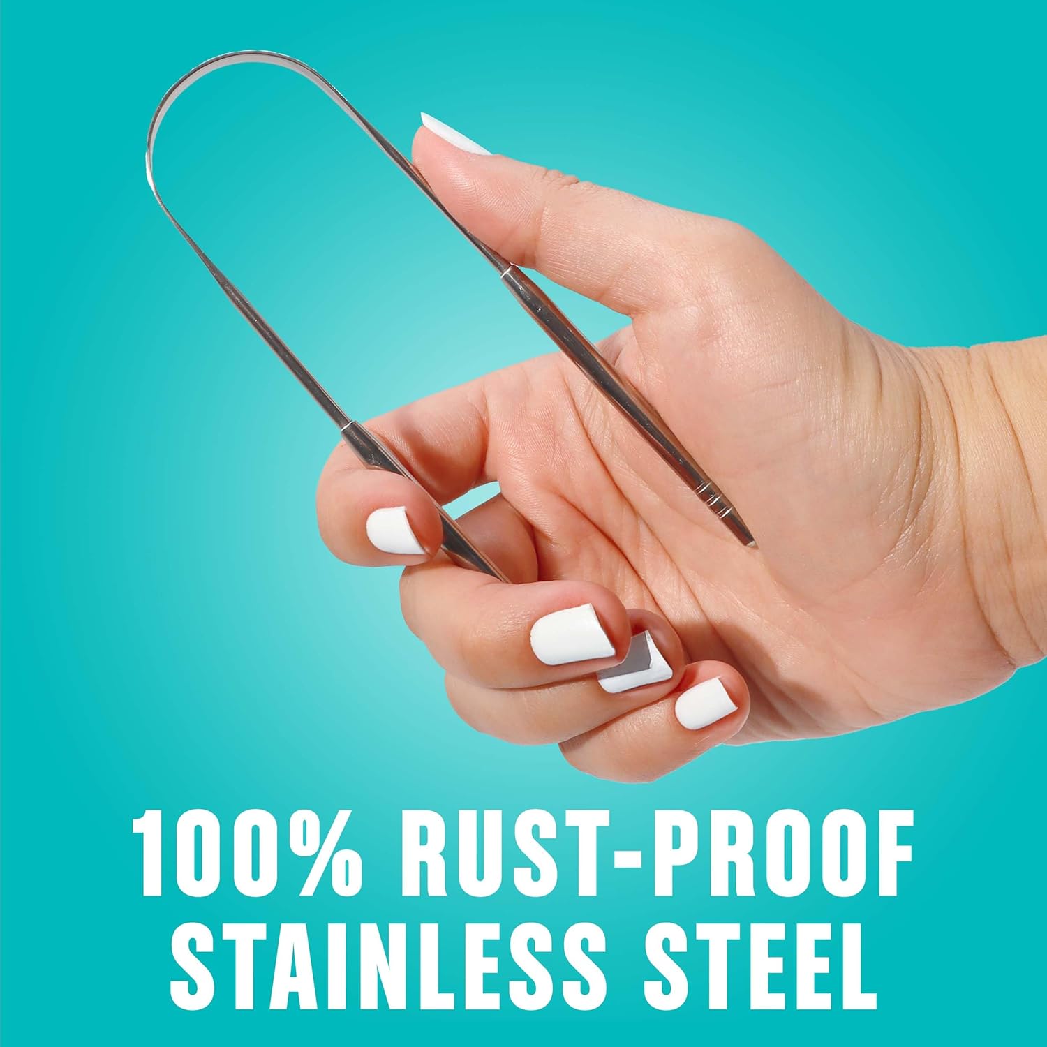 - RUST-PROOF, 100% STAINLESS STEEL: This tongue cleaner is made with high-quality, 100% Stainless Steel to ensure durability and performance. Each metal tongue scraper features a curved shape specially designed to clean the hard to reach places in your tongue, keeping your mouth feeling fresh and clean.