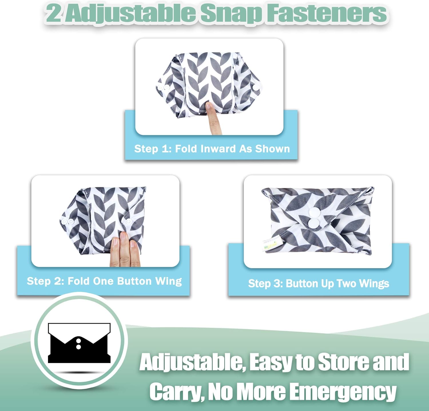 - Two Snaps Design for better fasten the pads around your underwear and make it more security. Change pad every 2-6 hours or as needed