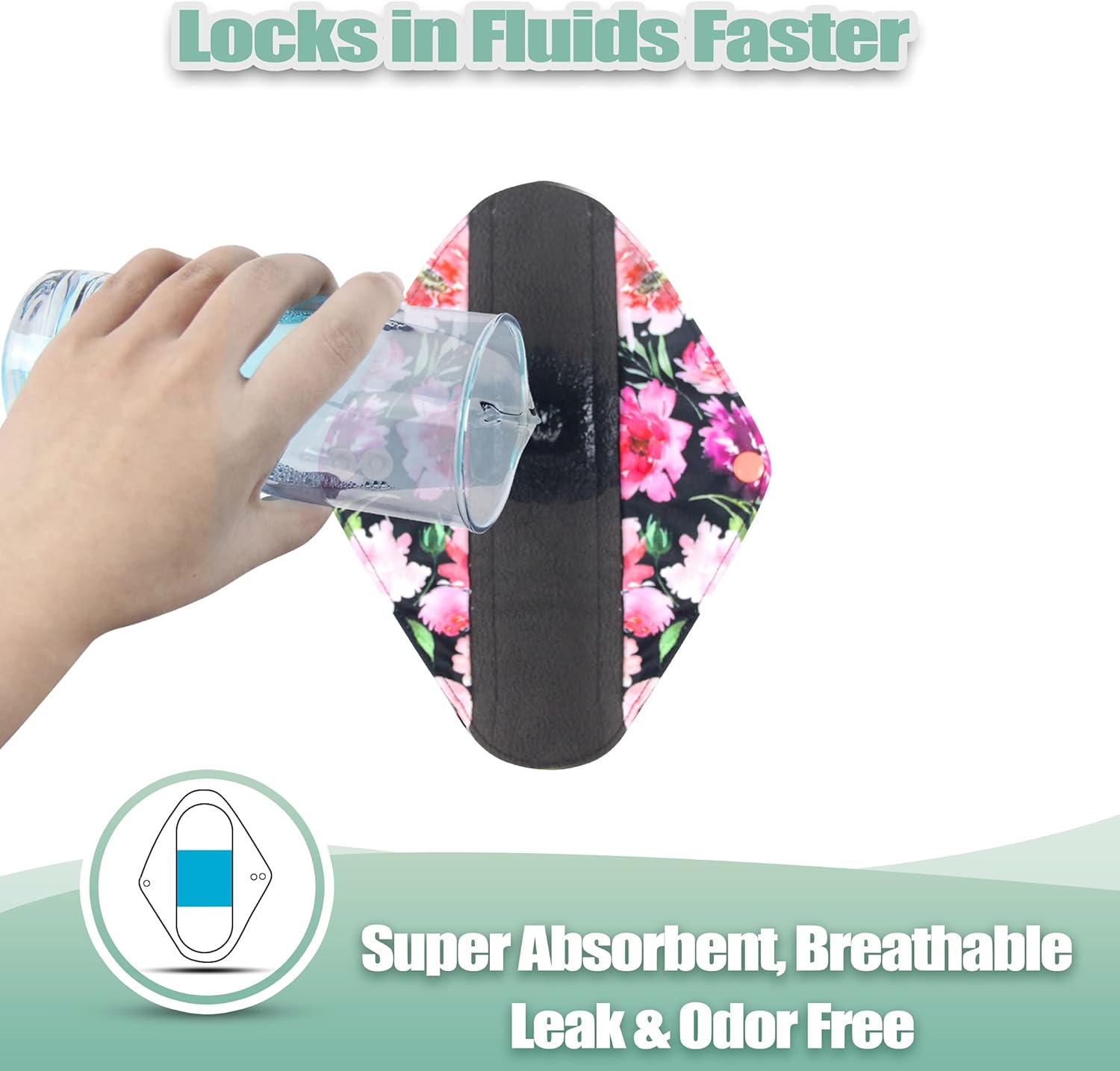 wegreeco Reusable Menstrual Pads - Reusable Sanitary Pads | Reusable Panty Liners | Soft Cloth Menstrual - 6 Pack with 1 Cloth Mini Wet Bag (Medium, Flower 02)