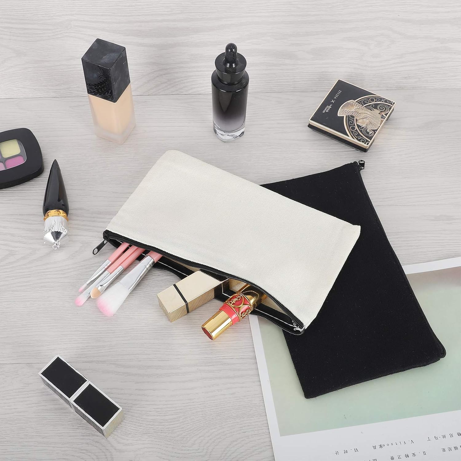 12 Pieces White Cotton Canvas Makeup Bag, Multipurpose Cosmetic Bag with Zipper Travel Toiletry Pouch, Blank DIY Craft Bag (White, S)
