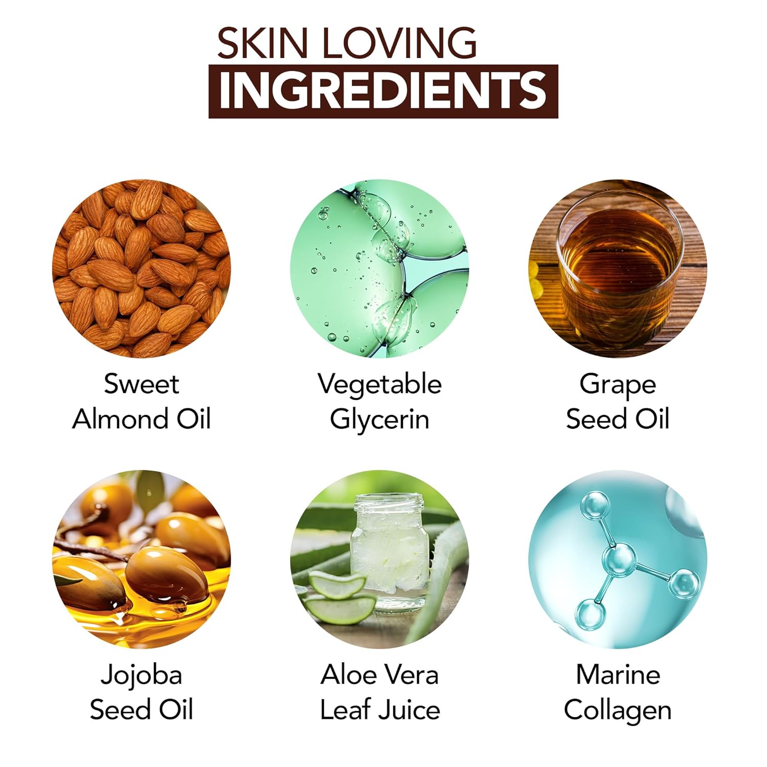 - Revitalizing Sweet Almond Oil Extract – High antioxidant and hydrating properties; helps protect your skin from environmental stressors like sunlight and pollution