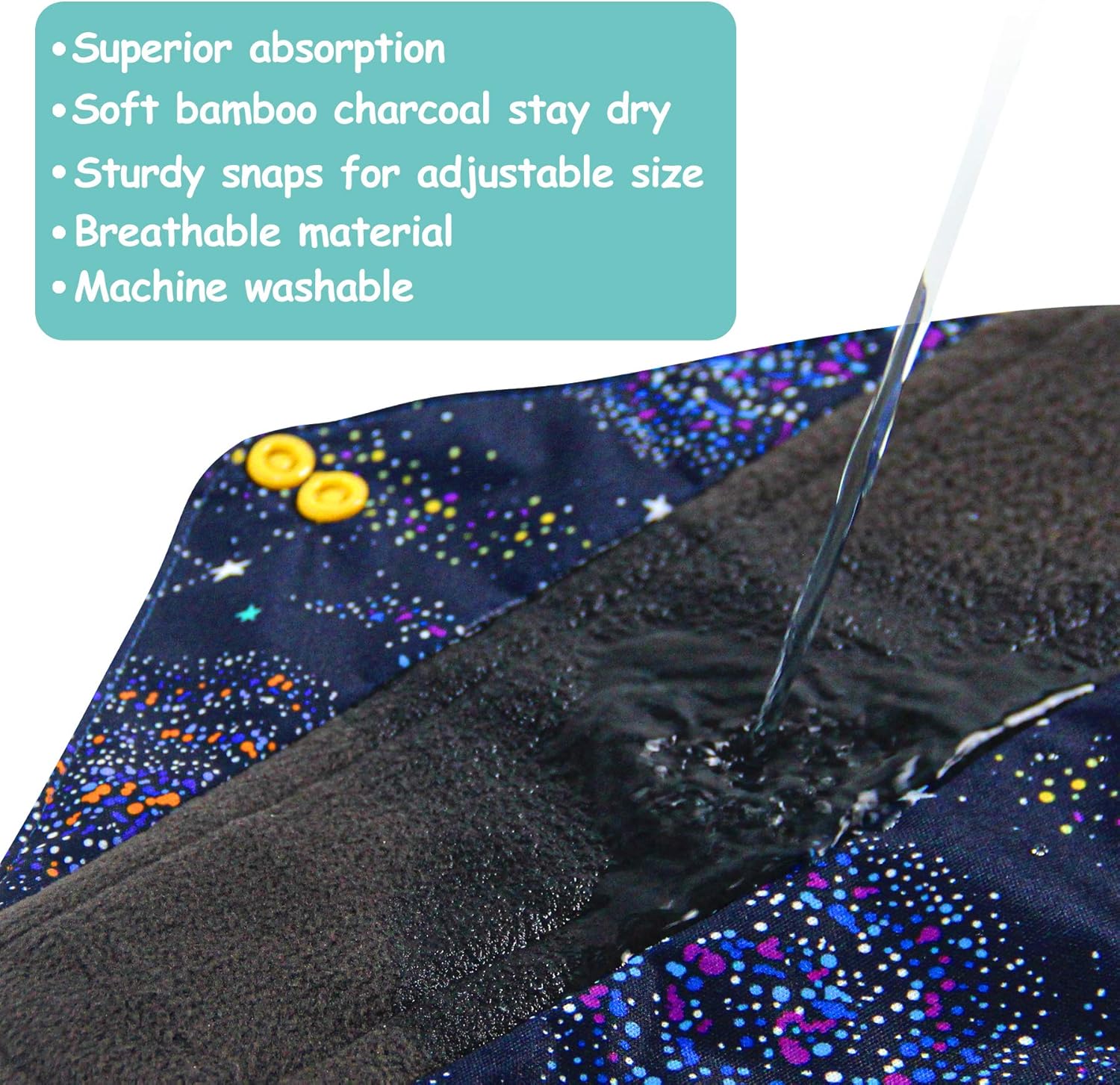 • Two Snaps Design for better fasten the cloth panty liners around your underwear and make it stay in place well.