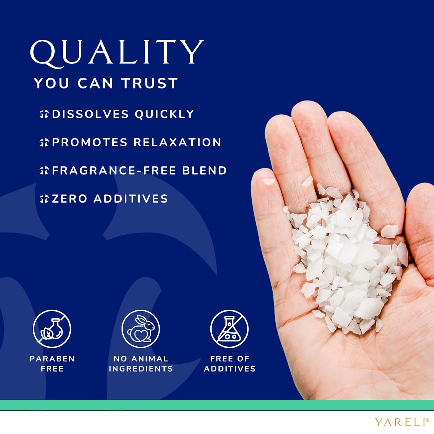- Harvested from the Dead Sea - Yareli's pure magnesium chloride flakes are imported from the Dead Sea in Israel, a salt lake that people have visited for centuries for its relaxing properties