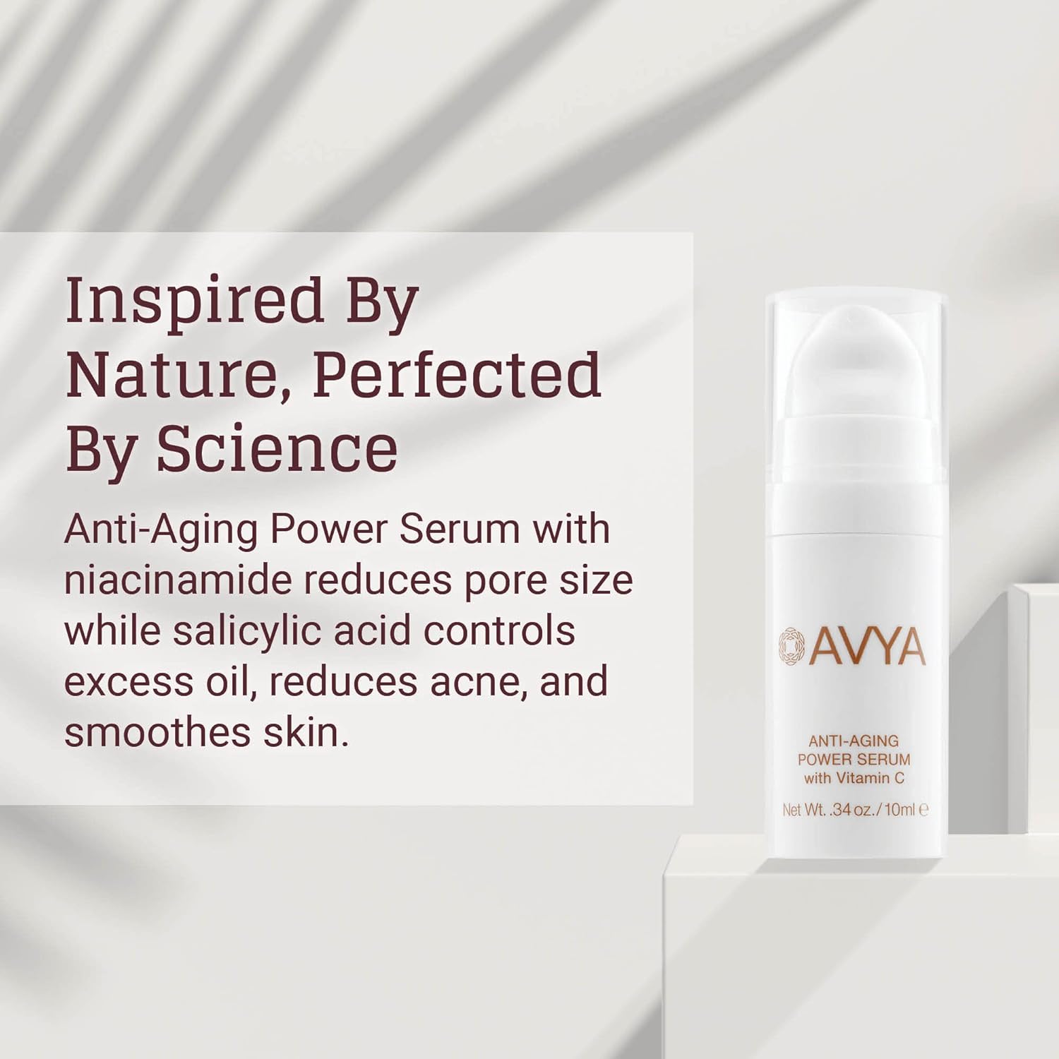 AVYA Anti-Aging Power Serum - Hyaluronic Acid Face Serum Plumps and Brightens Skin/Travel Size Retinol Treatment Reduces Fine Lines and Boosts Collagen for Smoother Skin / 0.34oz (10ml)