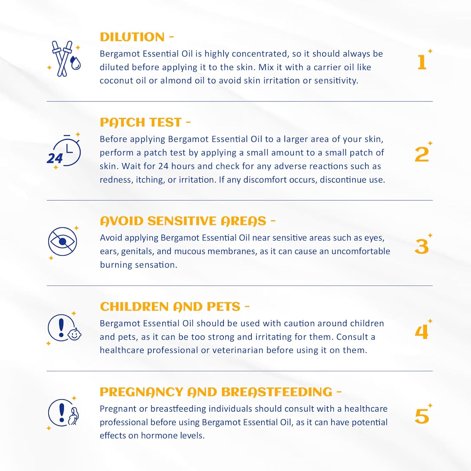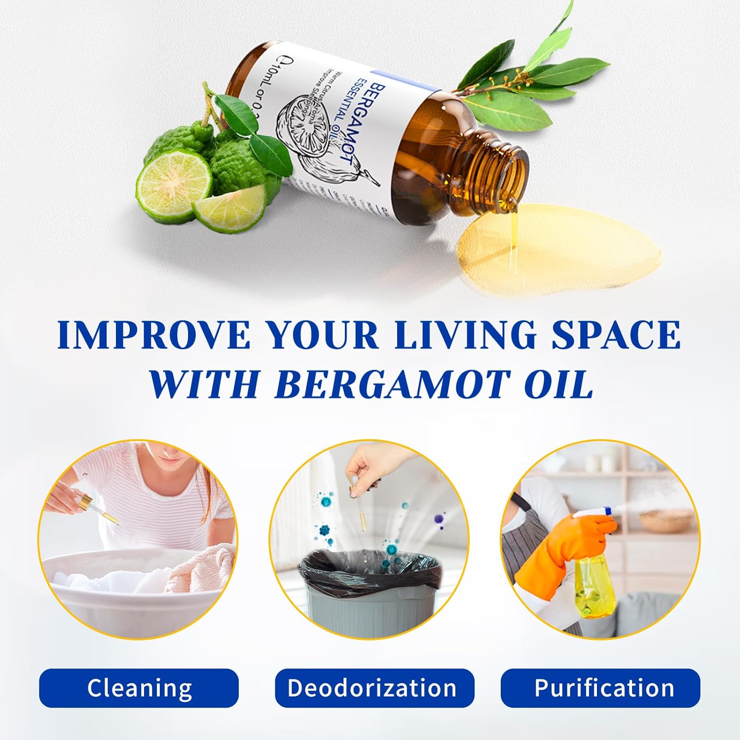 - Multiple Use Scenarios: Add 1-2 drops of bergamot essential oil to your diffuser to eliminate odors. It is also great for kitchens, showers, bathtubs, toilets, cars, air freshening, offices, bedrooms, yoga, saunas, spas, aromatherapy and outdoor spaces