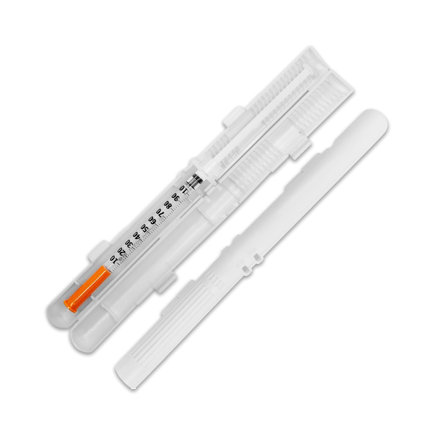 GMS 60 Unit Syringe Case - Holds New, Prefilled & Used Syringes with Needles - Small & Discreet - Ideal for Travel - Sharps Container - 2 Pack - Clear and White
