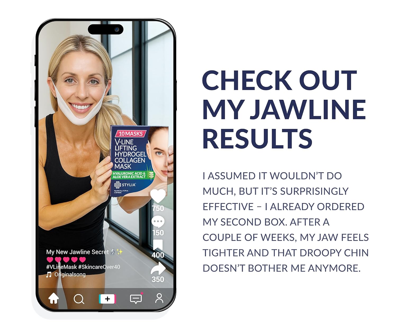 - DOUBLE CHIN REDUCER: Infused with Hyaluronic Acid, Aloe Vera, and Cica. Our Collagen Mask targets the jawline, promoting enhanced definition for a sharper, more sculpted look. Experience the confidence of a slim, youthful face without invasive procedures.