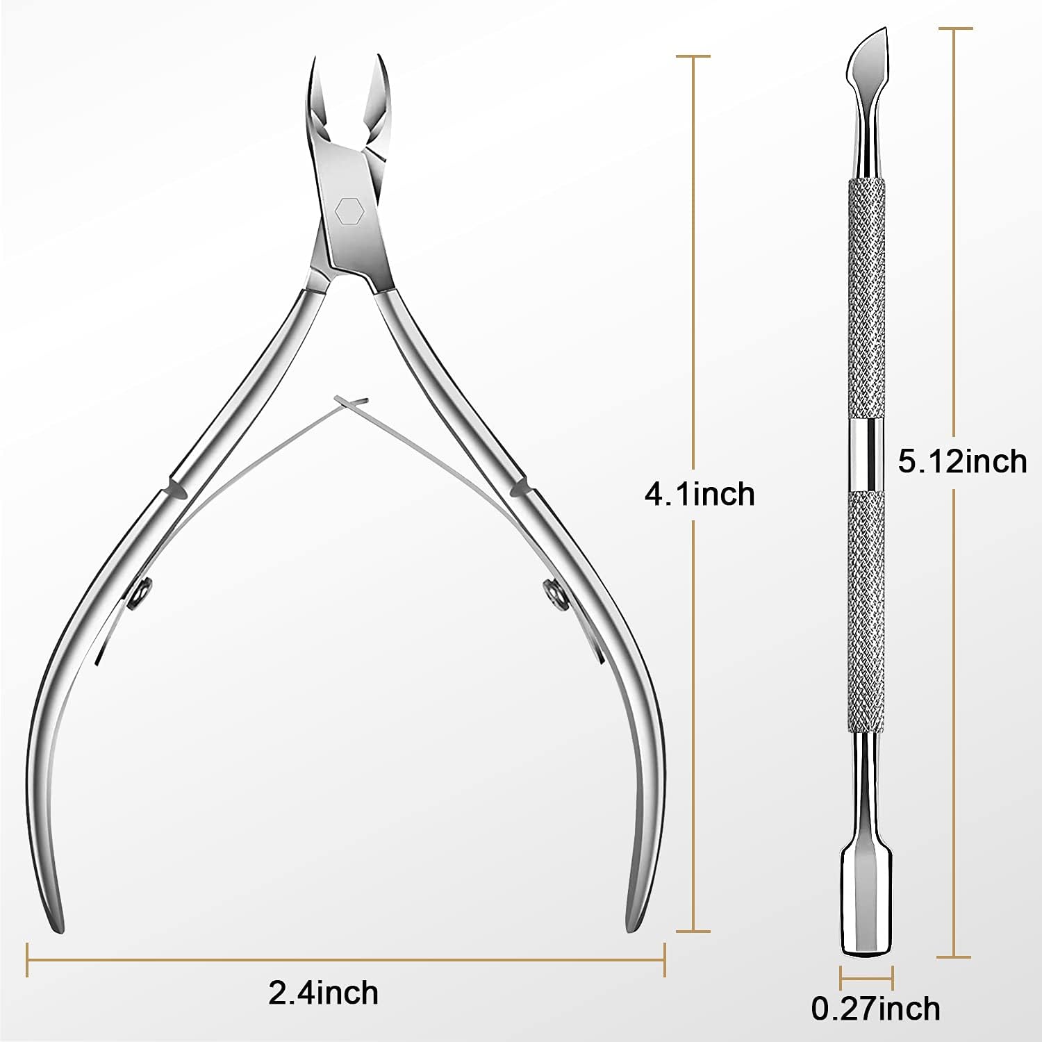 Cuticle Trimmer with Cuticle Pusher - Easkep Cuticle Remover Cuticle Nipper Professional Stainless Steel Cuticle Cutter Clipper Pedicure Manicure Tools for Fingernails and Toenails (D501-Silver)