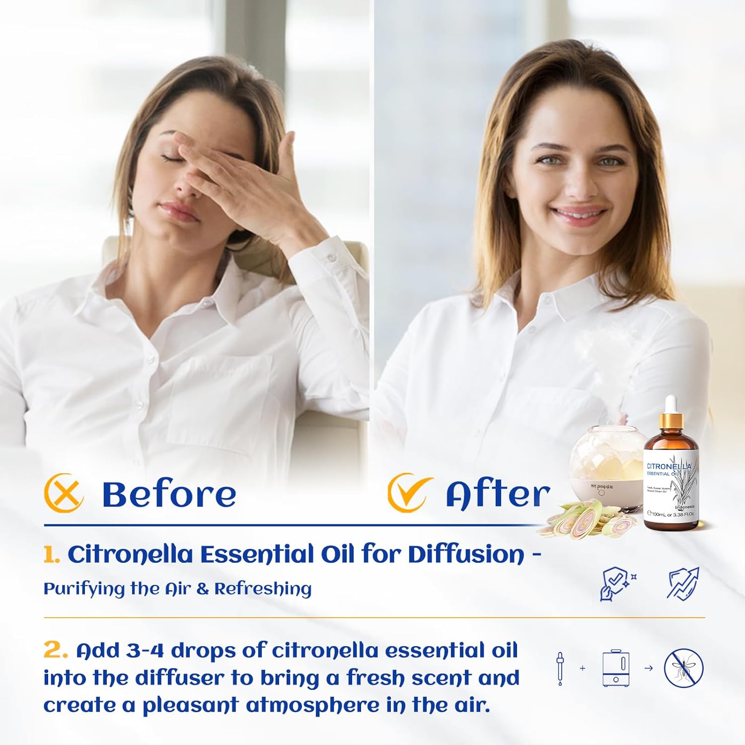 - Ingredients & Aroma: Sourced from Indonesia and extracted using traditional steam distillation, our 100% pure citronella essential oil is refreshing and invigorating