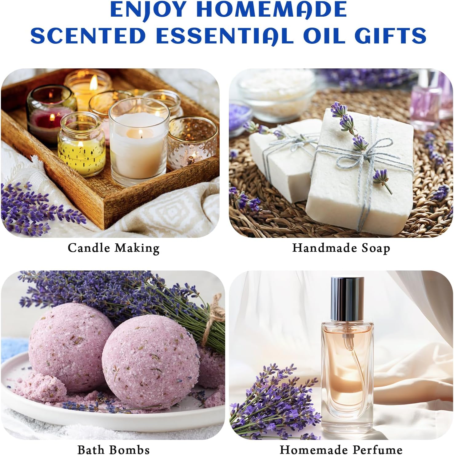 - Multiple Usage: Handcrafters prefer our lavender oil for DIY projects like scented candles, soap, sugar scrubs, sleep masks, sachets, bath bombs, salts, and more