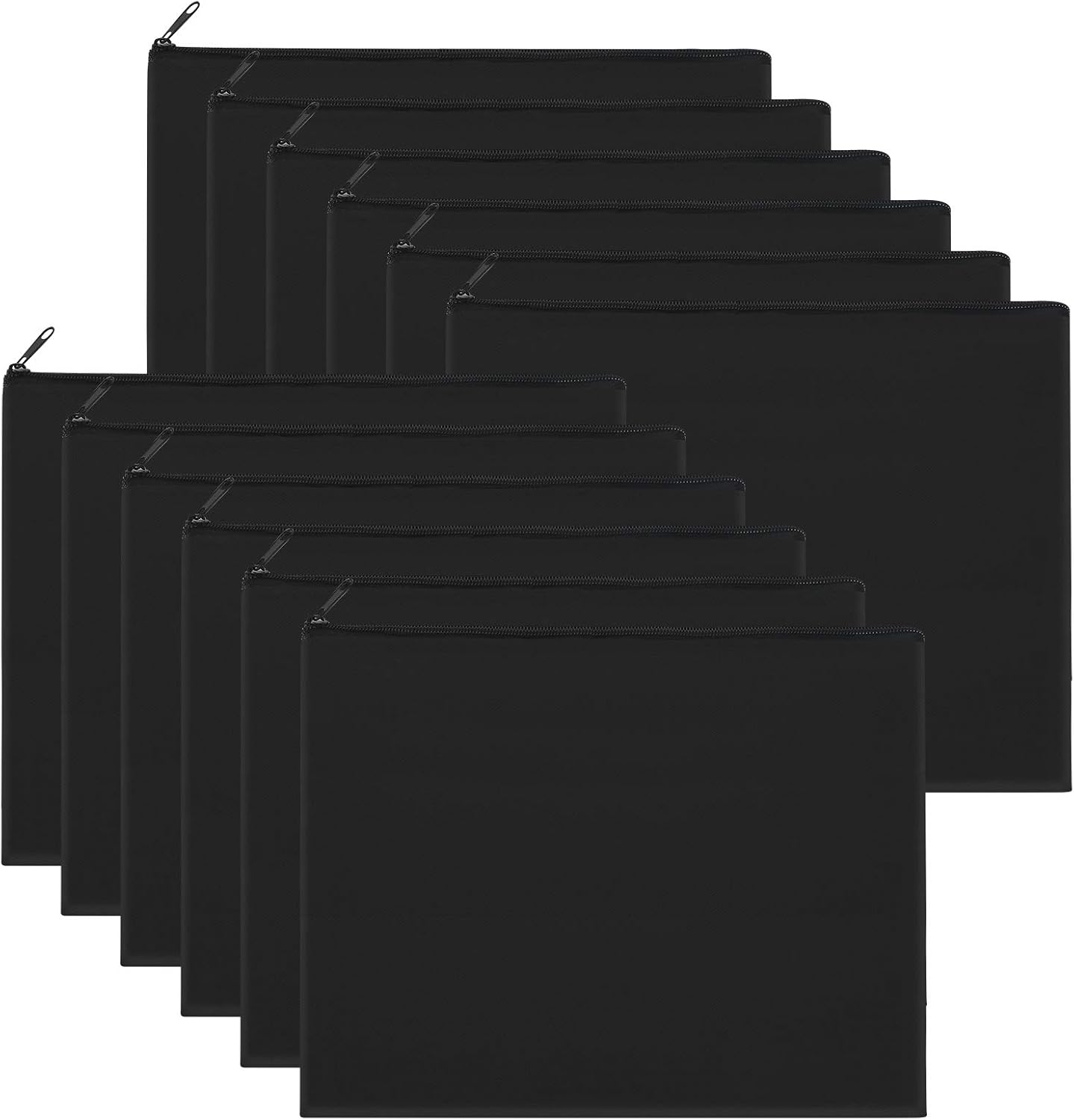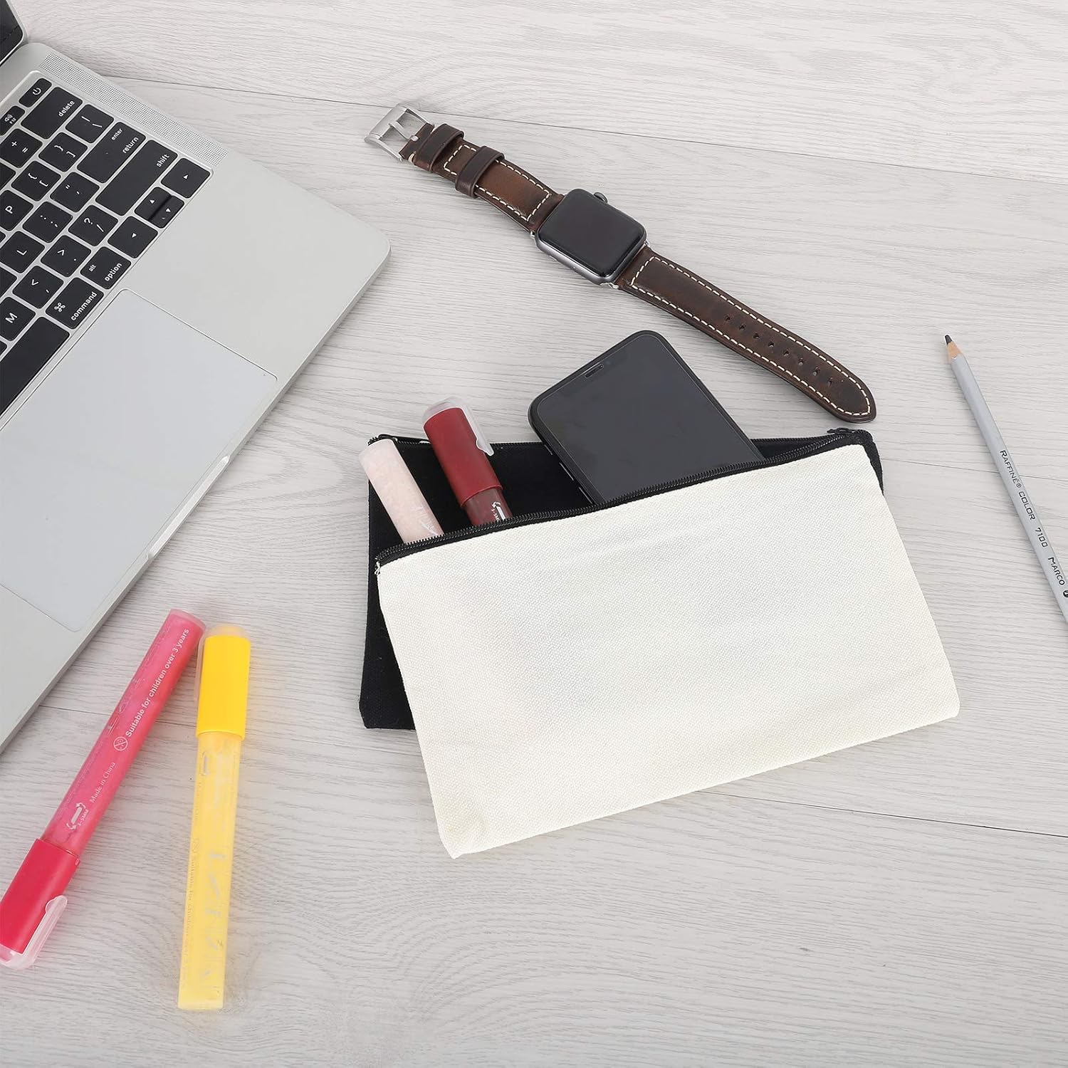 12 Pieces Black Cotton Canvas Makeup Bag, Multipurpose Cosmetic Bag with Zipper Travel Toiletry Pouch, Blank DIY Craft Bag (Black, L)