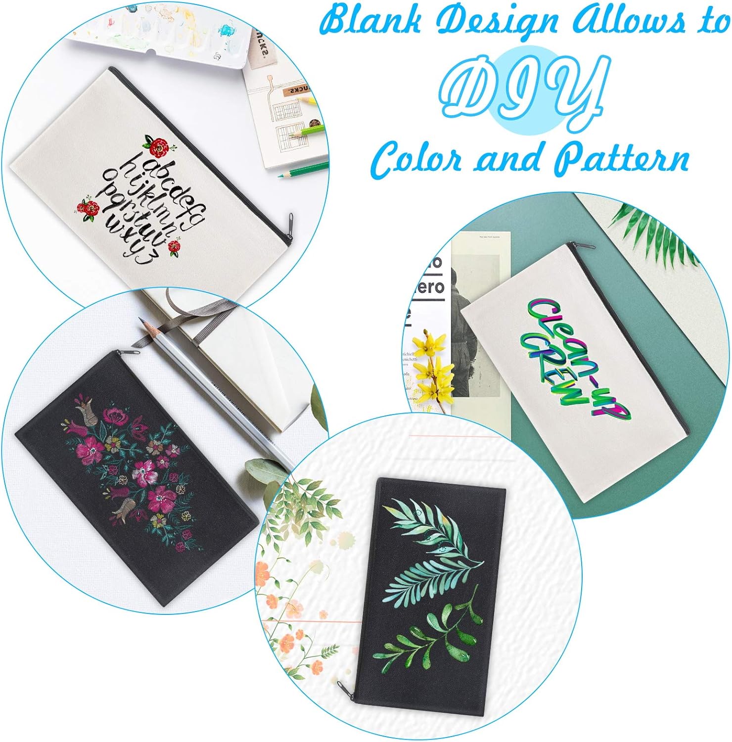 12 Pieces White Cotton Canvas Makeup Bag, Multipurpose Cosmetic Bag with Zipper Travel Toiletry Pouch, Blank DIY Craft Bag (White, M)