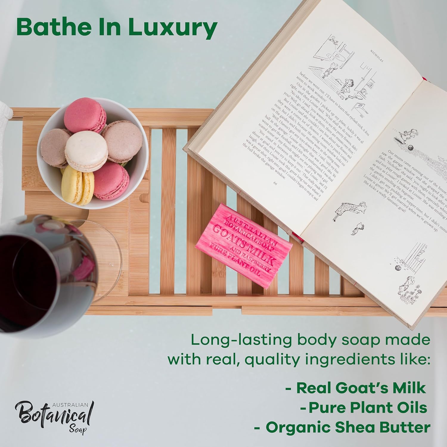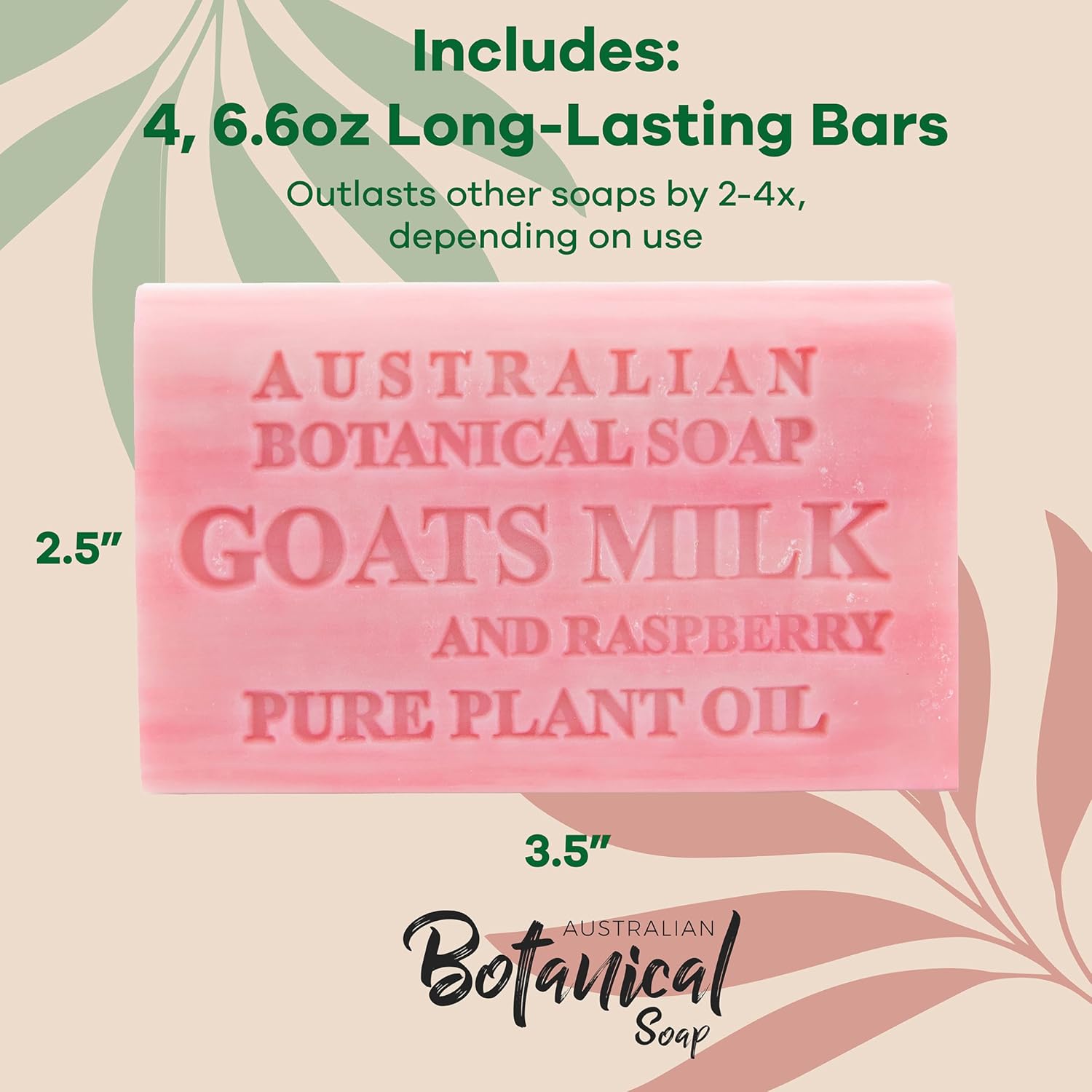 Australian Botanical Soap Goats Milk with Raspberry 6.6 oz Luxury Soap Bars Enriched with Shea Butter, Pack of 4