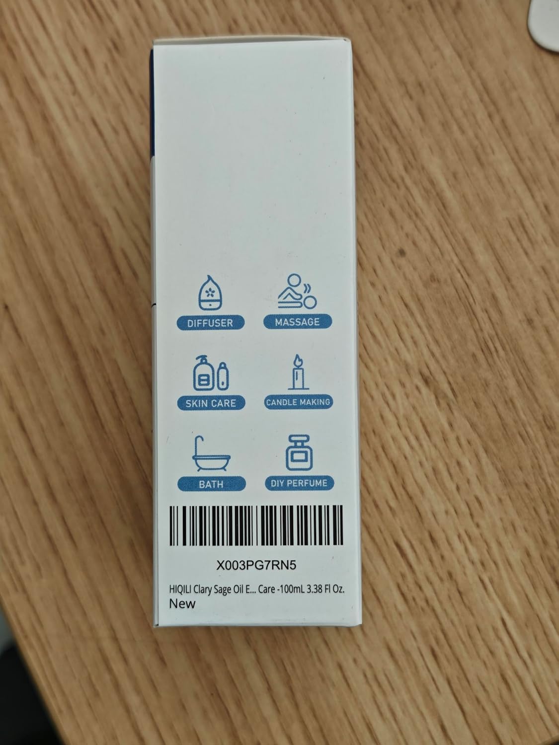 HIQILI Clary Sage Oil Essential, Herbal Sooth Aroma in Diffuse, Meditation, Calming Sleep at Bedtime, Body Massage, Moisturize Skin, DIY Deodorant Spray - 100ML