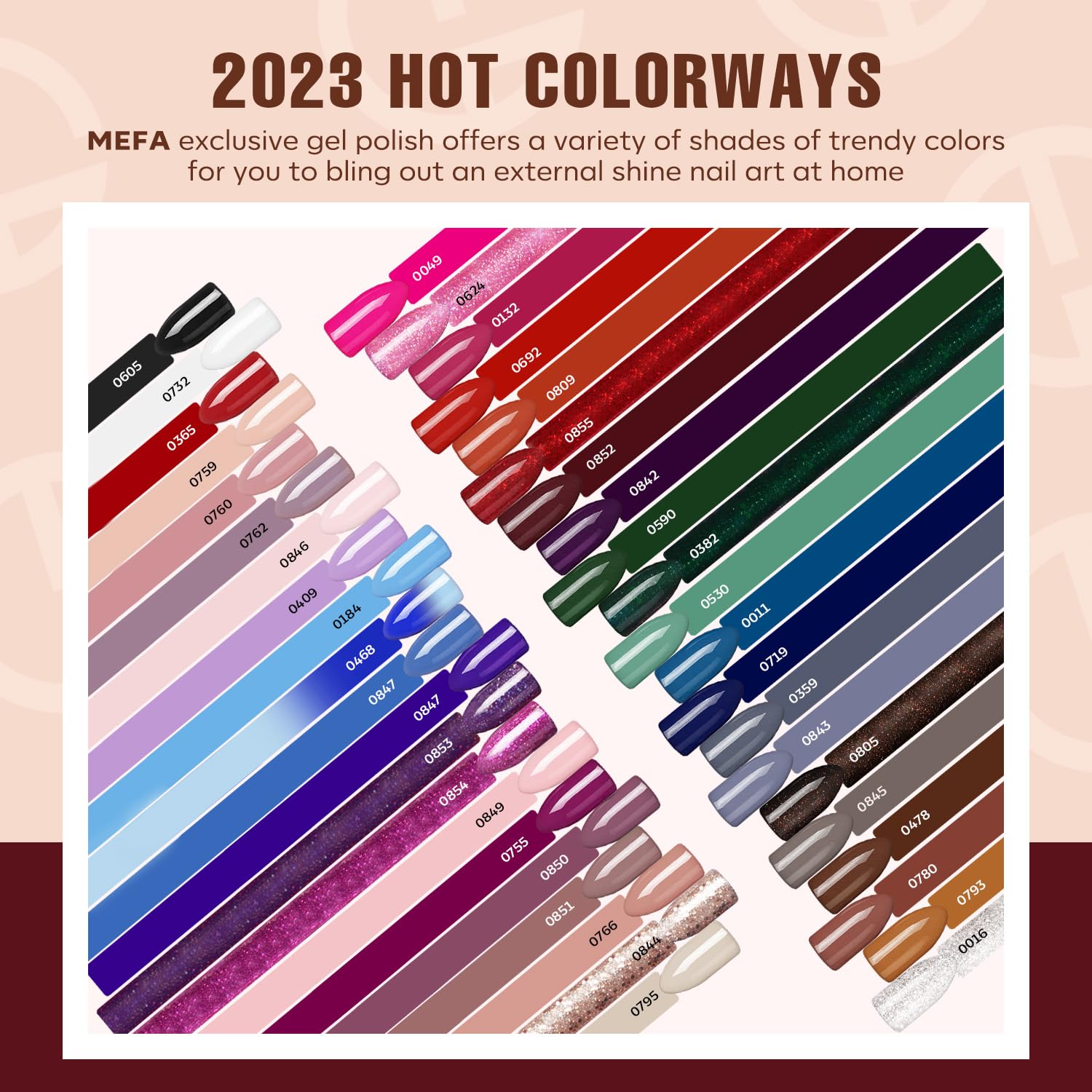 - 【DIY Salon Manicure at Home】This 42 colors gel nail polish kit covers a wide spectrum of shades suitable for any occasion throughout the year, designed with both nail beginners and experts in mind. MEFA gel polish kit includes a repertoire of nail care essentials, ensures a smoother and more nourishing nail care routine, enhance nail strength and durability.