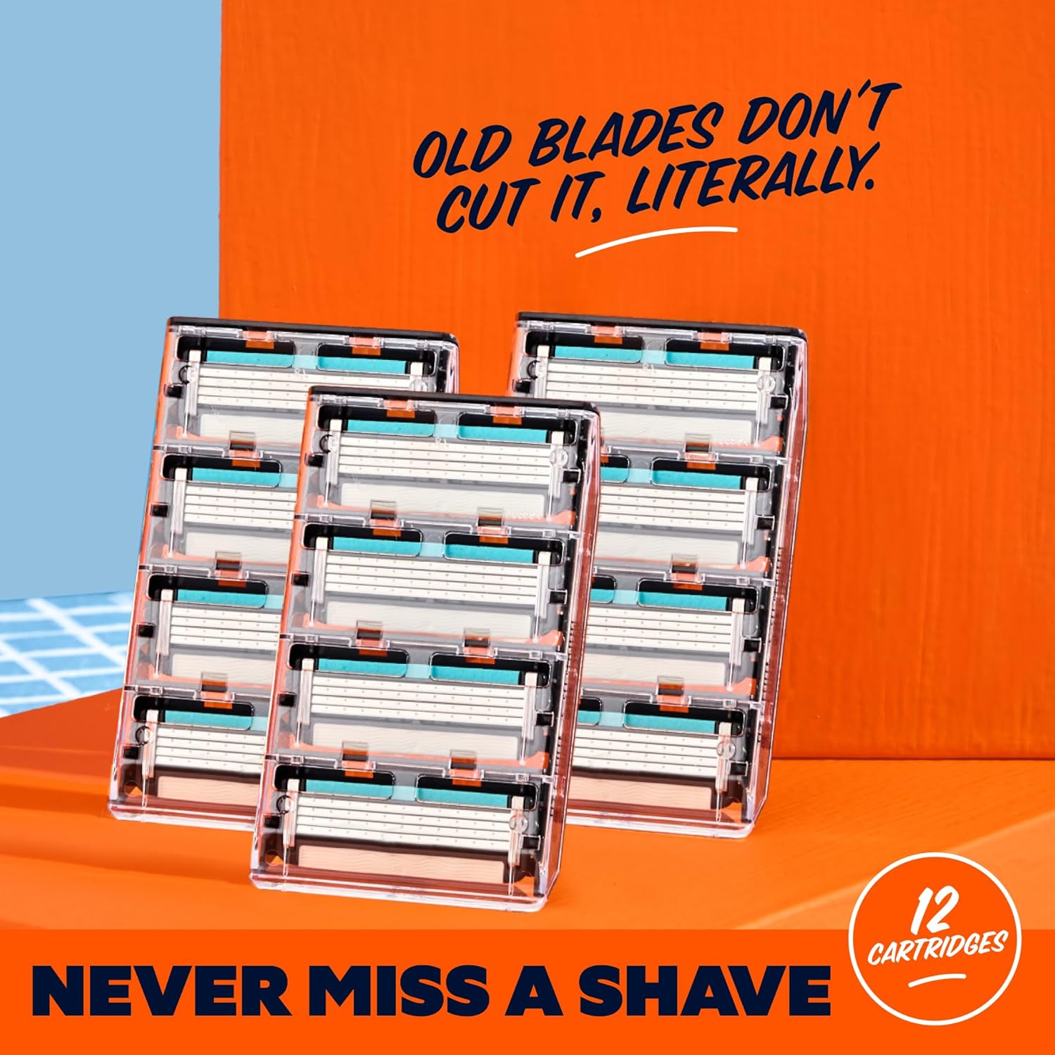 Dollar Shave Club | 4 Blade Razor Refills (12 Pack) | Swift Rinse Blades for Longer and Thicker Hair