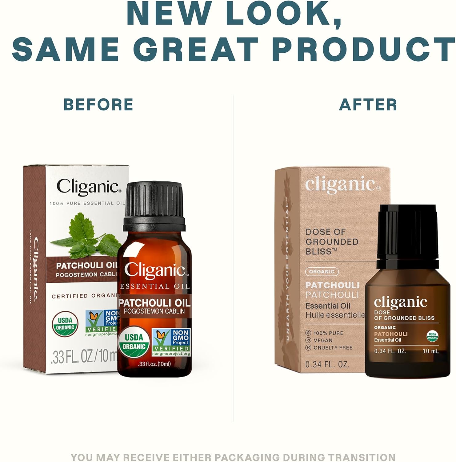 Cliganic Organic Patchouli Essential Oil - 100% Pure Natural Undiluted, for Aromatherapy Diffuser | Non-GMO Verified (Packaging May Vary)