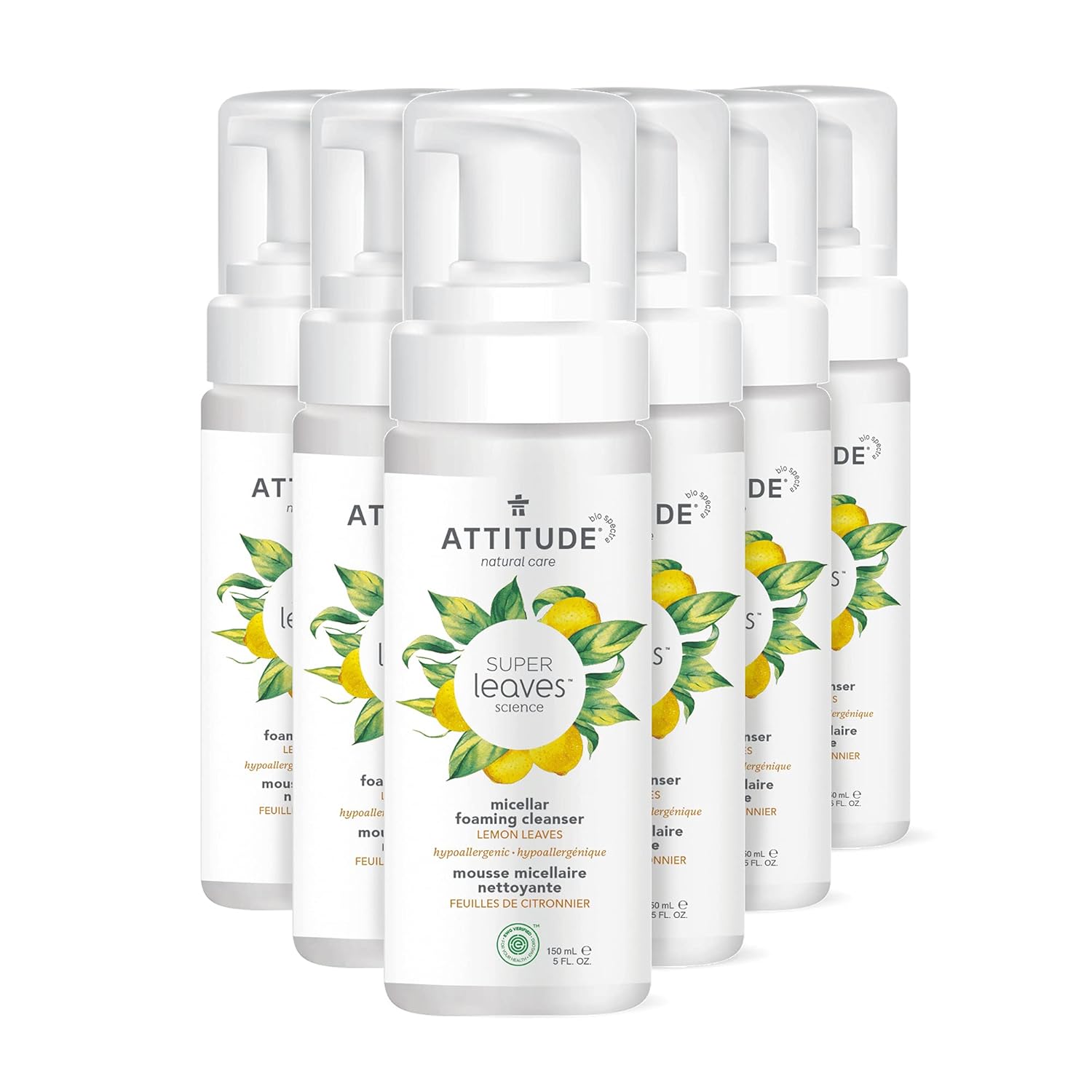 ATTITUDE Micellar Foaming Facial Cleanser, EWG Verified, Dermatologically Tested, Plant and Mineral-Based, Vegan, Earl Grey & Cucumber Scent, 5 Fl Oz (Pack of 6)