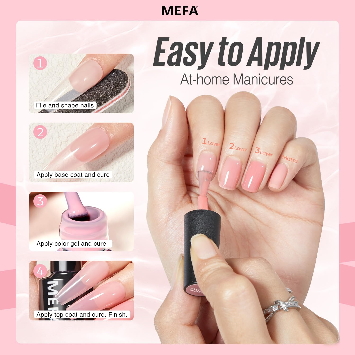 MEFA Jelly Gel Nail Polish Set, 12 Colors Nude Pink Milky White Sheer Nail Polish Neutral Transparent Gel Nail Soak Off DIY Nail Art Home Salon Manicure Gifts for Girls