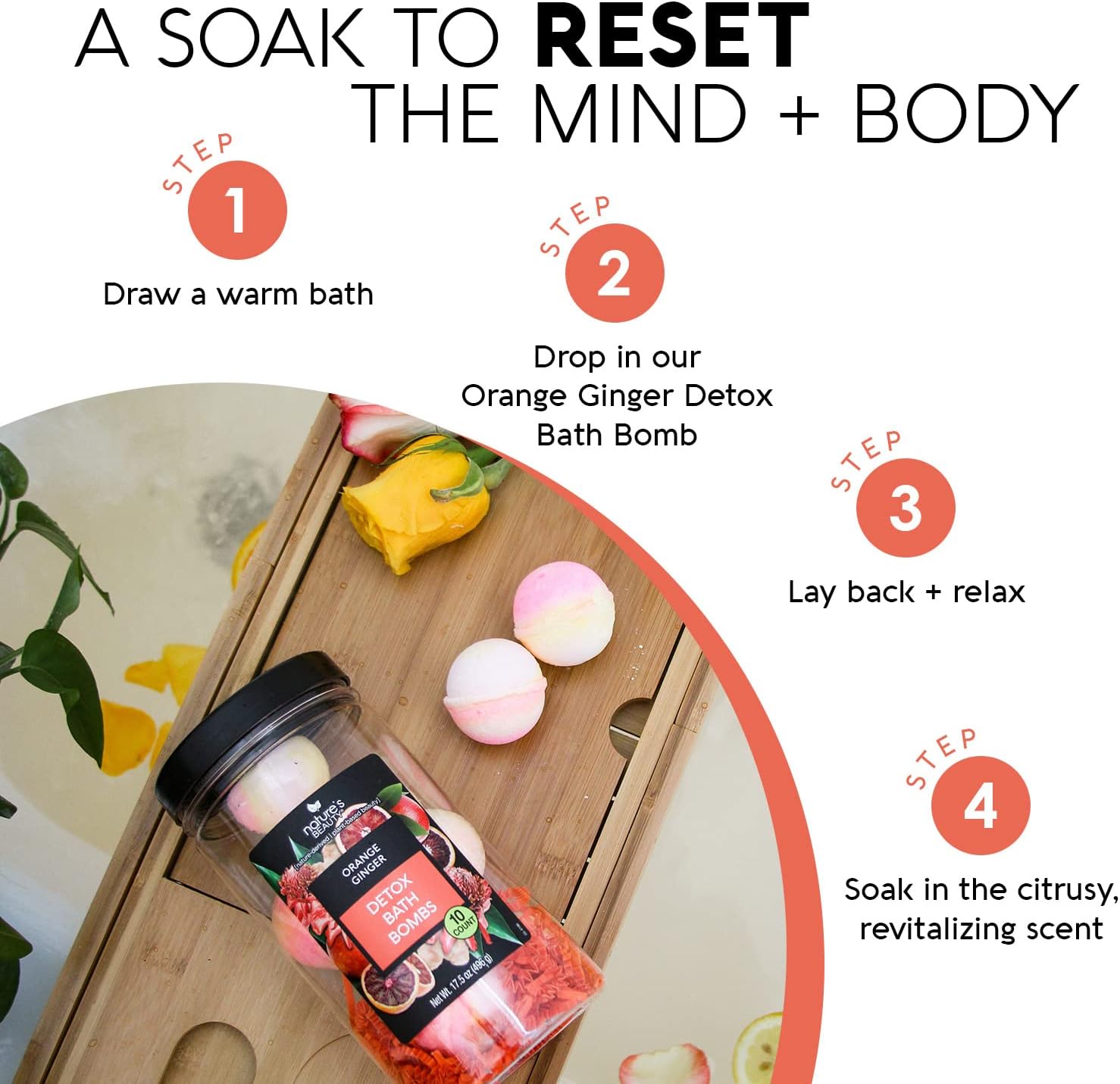 Nature's Beauty Orange Ginger Detox Bath Bomb Gift Set Multi-Pack - Luxury Fizzy Spa Bomb w/Citrus + Woodsy Patchouli Scent Made with Coconut Oil & Witch Hazel, 17.5 oz | 10 ct ea (2 Pack)