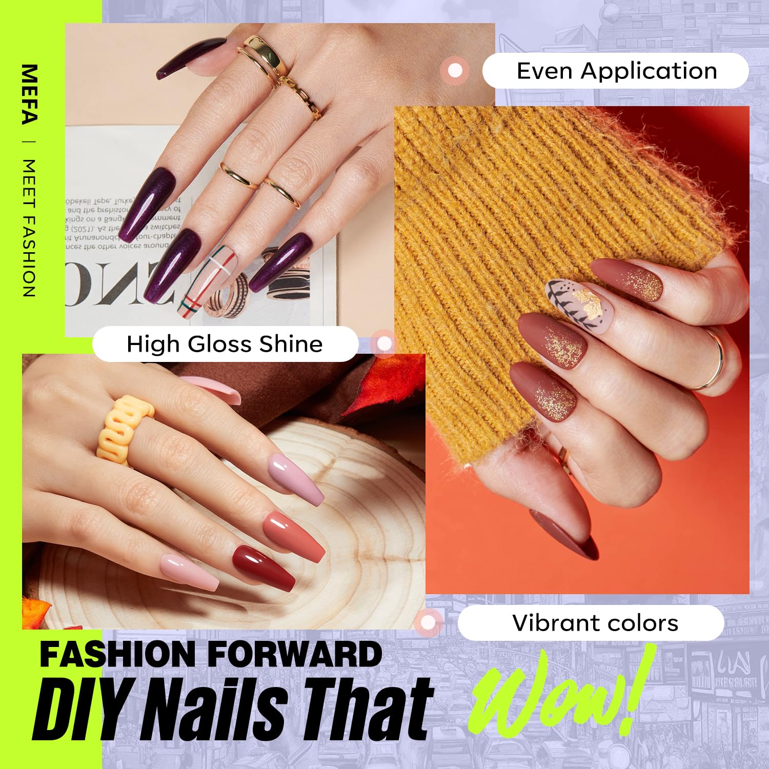 - Long-lasting Salon Quality: This forest tones collection set can be used with all brands of top and base coat, but of course, with MEFA the effect is better; this set is long-lasting for two weeks with perfect shine under the proper application