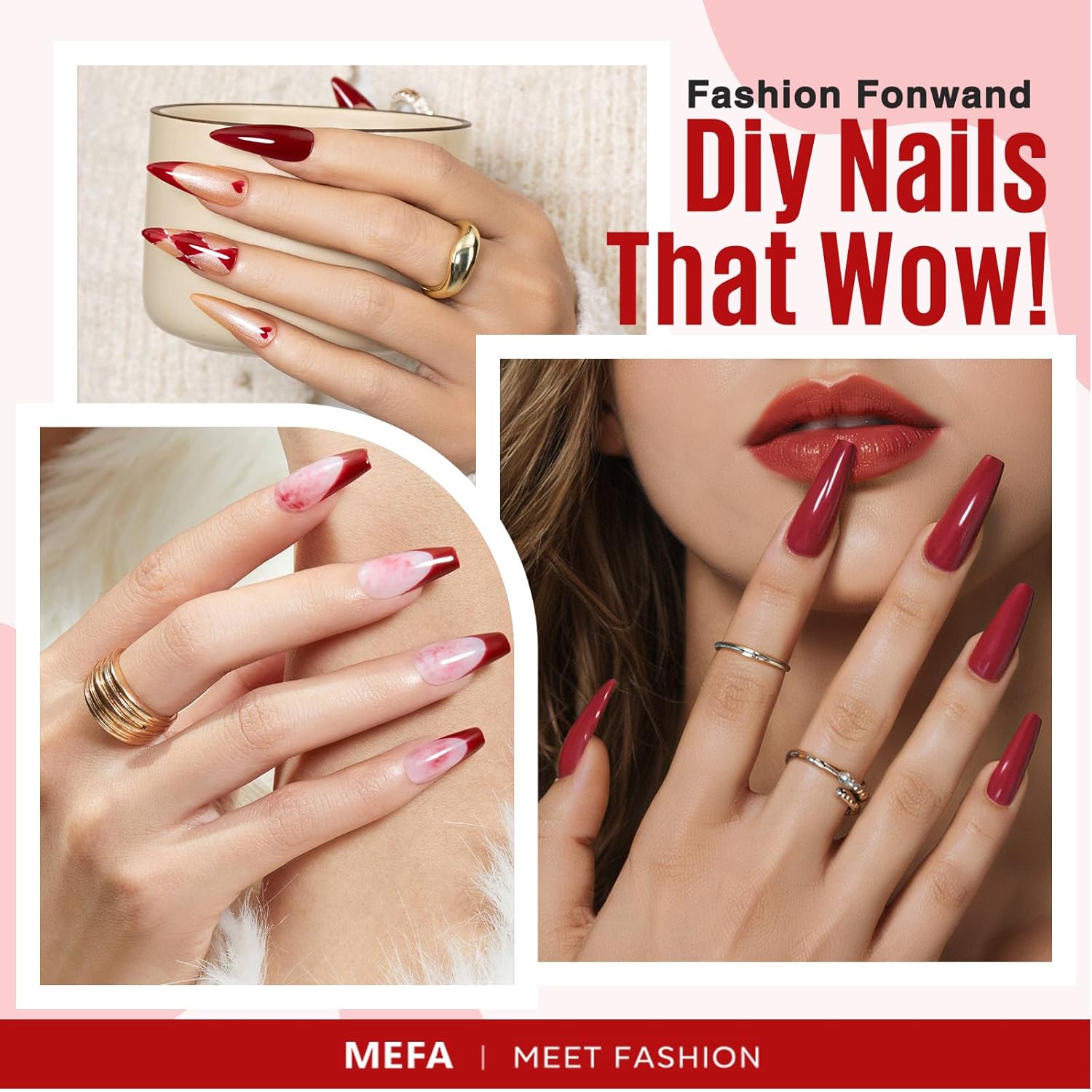 MEFA Red Gel Nail Polish Set, 6 Colors Gel Polish Kit Popular Burgundy Glitter Nail Polish Soak Off Rose Dark Red Shimmer DIY Home Salon Manicure Gifts for Women Girls 2025