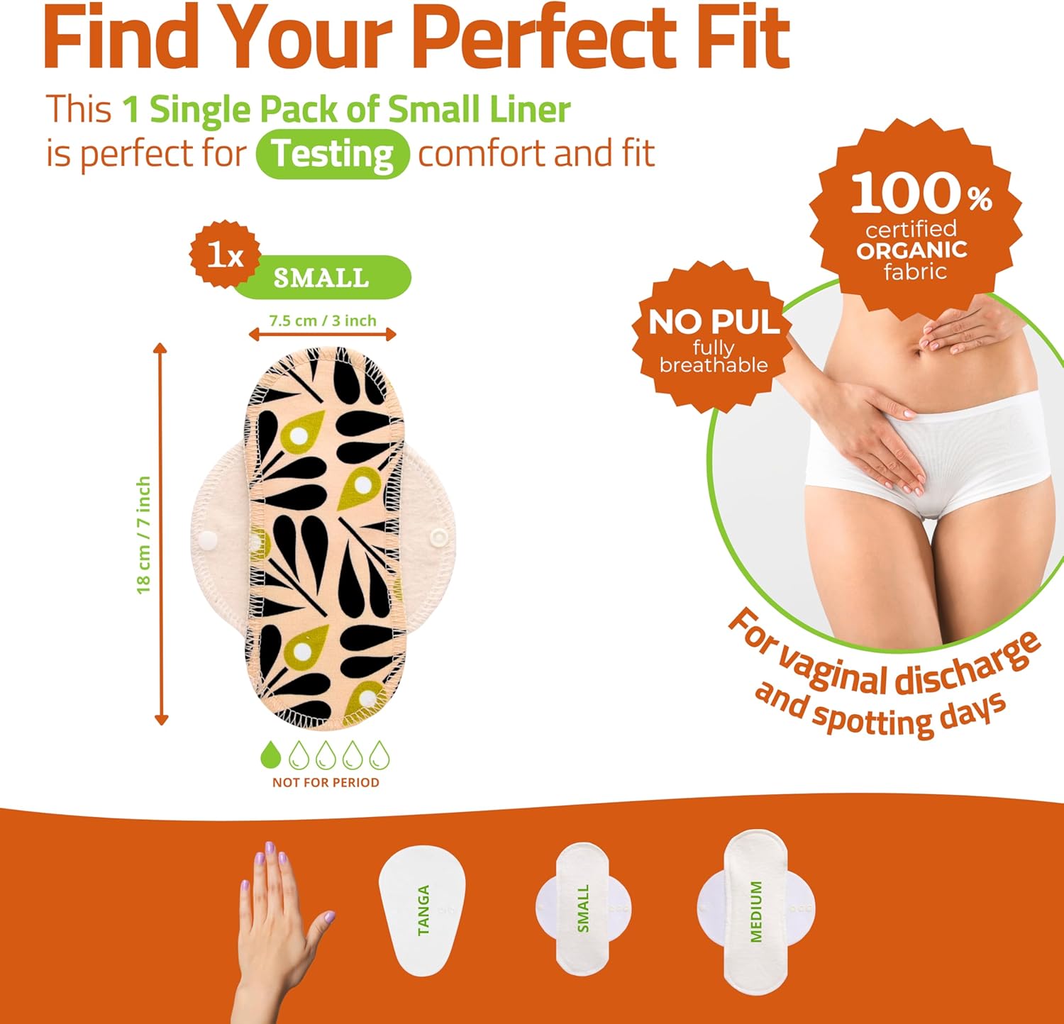 - 1-PACK SMALL LINER FOR LIGHT DISCHARGE: This pack includes 1 ultra thin reusable pantyliners in Small size - perfect for daily vaginal white discharge, teen years, or as backup for cups and tampons. Our liner is machine washable, quick-drying, and comes with a storage bag for the ideal use.