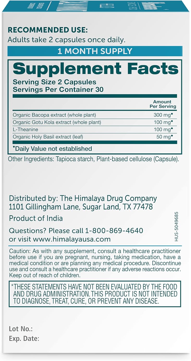 Himalaya Hello Calm Mind Herbal Supplement, with Bacopa, L-Theanine, Gotu Kola, Supports Concentration & Focus, Cognitive Function, Clear Thinking, Relaxation, Vegan, Gluten Free, 60 Capsules