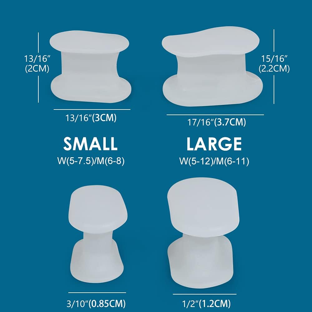 - 【Large+Small Size】We have modified the size of the product. Add small size toe Separators to suit more people's needs. We recommend the toe separators to be worn between the 1st and 2nd toes which made great difference on big toe separation. If these two size are too thick for you, please choose other spacers of 4/10’’, 6/10’’ thickness from our shop.