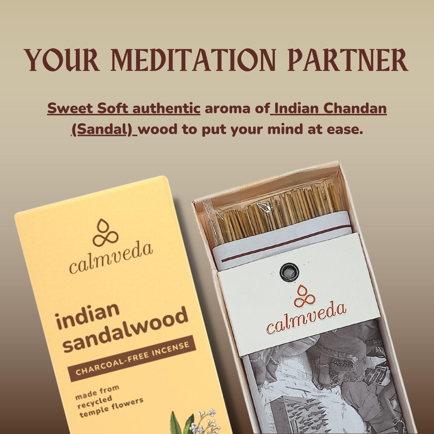 Indian Sandalwood Incense Sticks - 80 Sticks, Charcoal Free, Upcycled Flowers, All Natural, Non Toxic, Meditation & Stress Relief