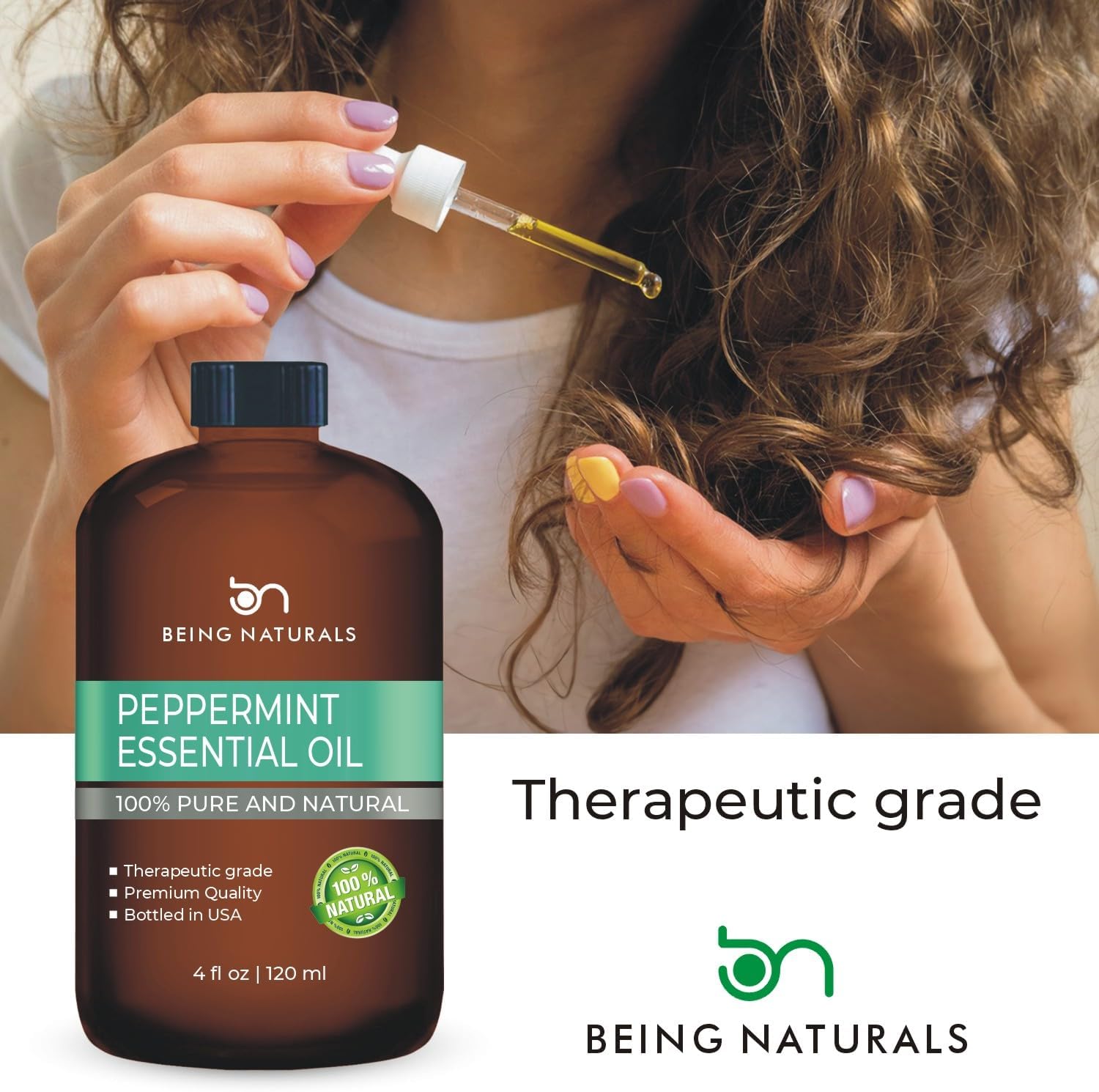 Peppermint Essential Oil - Huge 4 FL OZ - 100% Pure & Natural – Premium Natural Oil with Glass Dropper (Peppermint Oil)