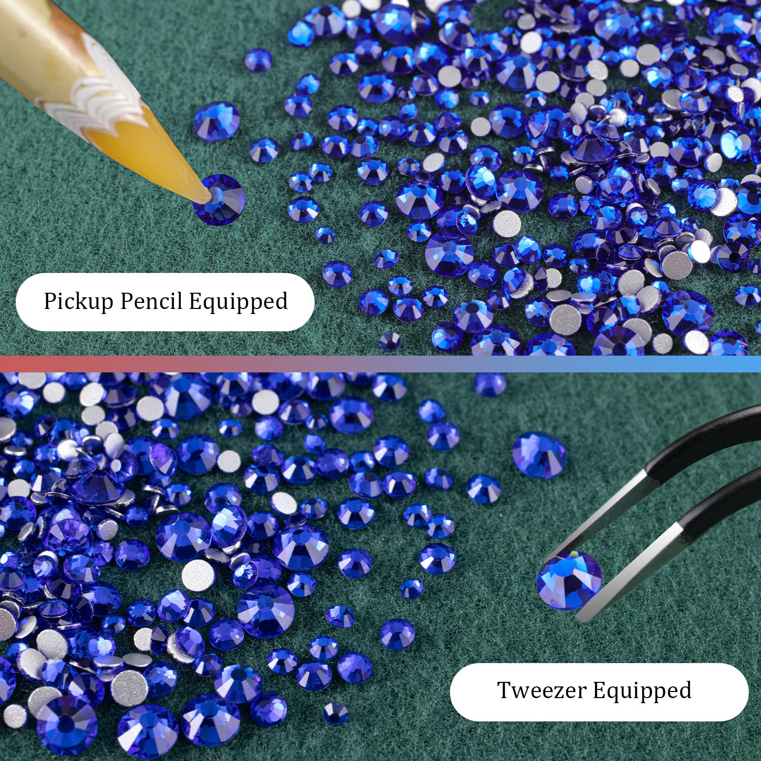- ❤WHAT YOU WILL RECEIVE -- 1 Box of 6 Sizes Royal Blue Round Glass Nail Crystal Rhinestones Beads (Totally About 1720 PCS); 1 PCS Rhinestone Picker Pencil; 1 PCS Tweezer. The Well Equipped Rhinestone Set Is Suitable for Both Professional Nail Technician and Inexperienced Starter for Nail Art.