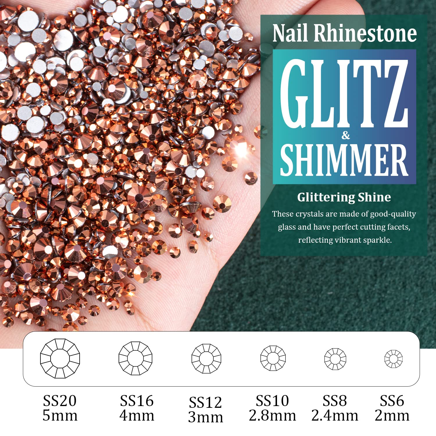 - ❤WHAT YOU WILL RECEIVE -- 1 Box of 6 Sizes Rose Gold Round Glass Nail Crystal Rhinestones Beads (Totally About 1720 PCS); 1 PCS Rhinestone Picker Pencil; 1 PCS Tweezer. The Well Equipped Rhinestone Set Is Suitable for Both Professional Nail Technician and Inexperienced Starter for Nail Art.