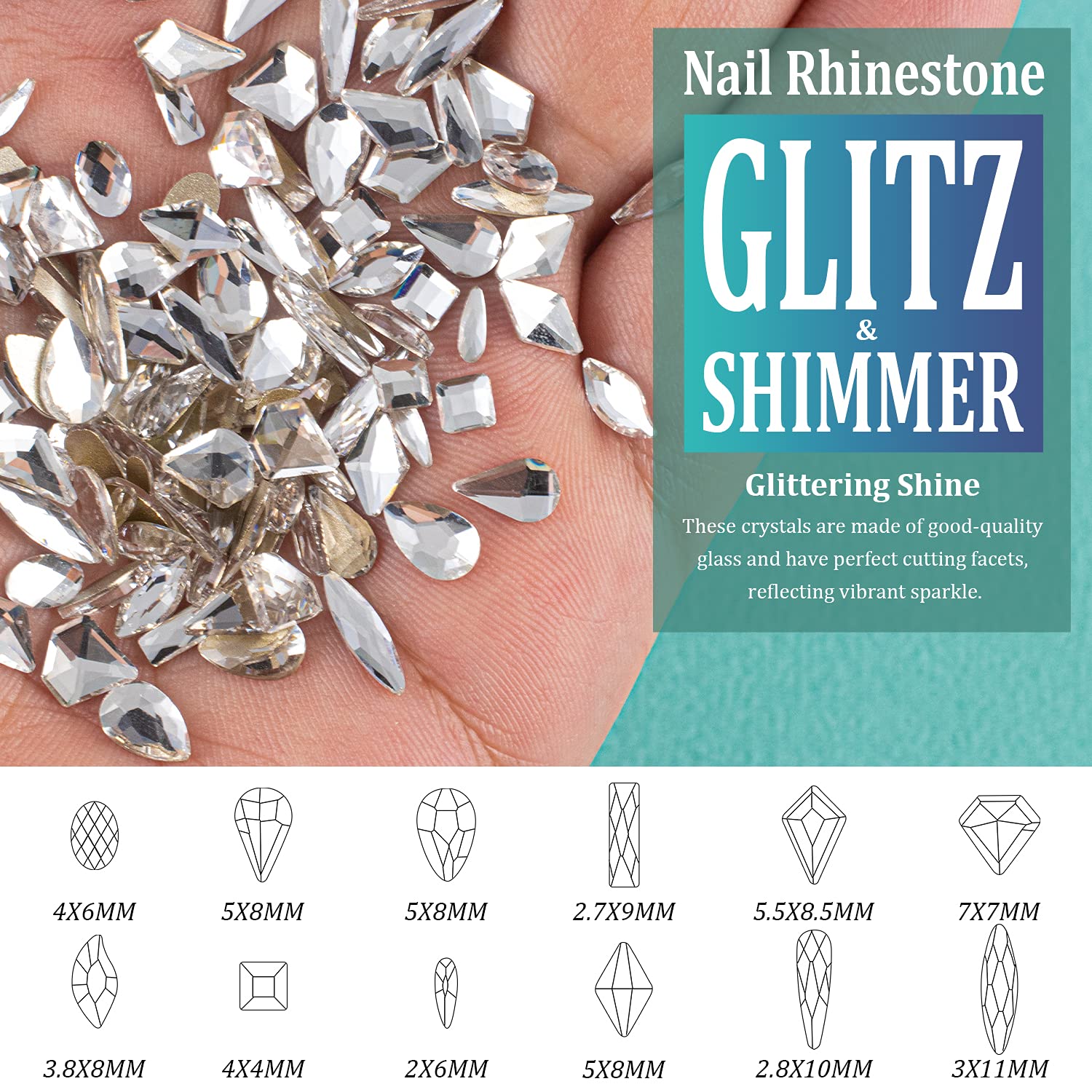 - ❤BRIGHT & VIBRANT SPARKLE -- The Nail Crystal Is Made of High Quality Glass And Has Delicate and Exquisite Shine. The Perfect Cutting Facets Endow Each Bead With Vibrant Glitz And Shimmer.