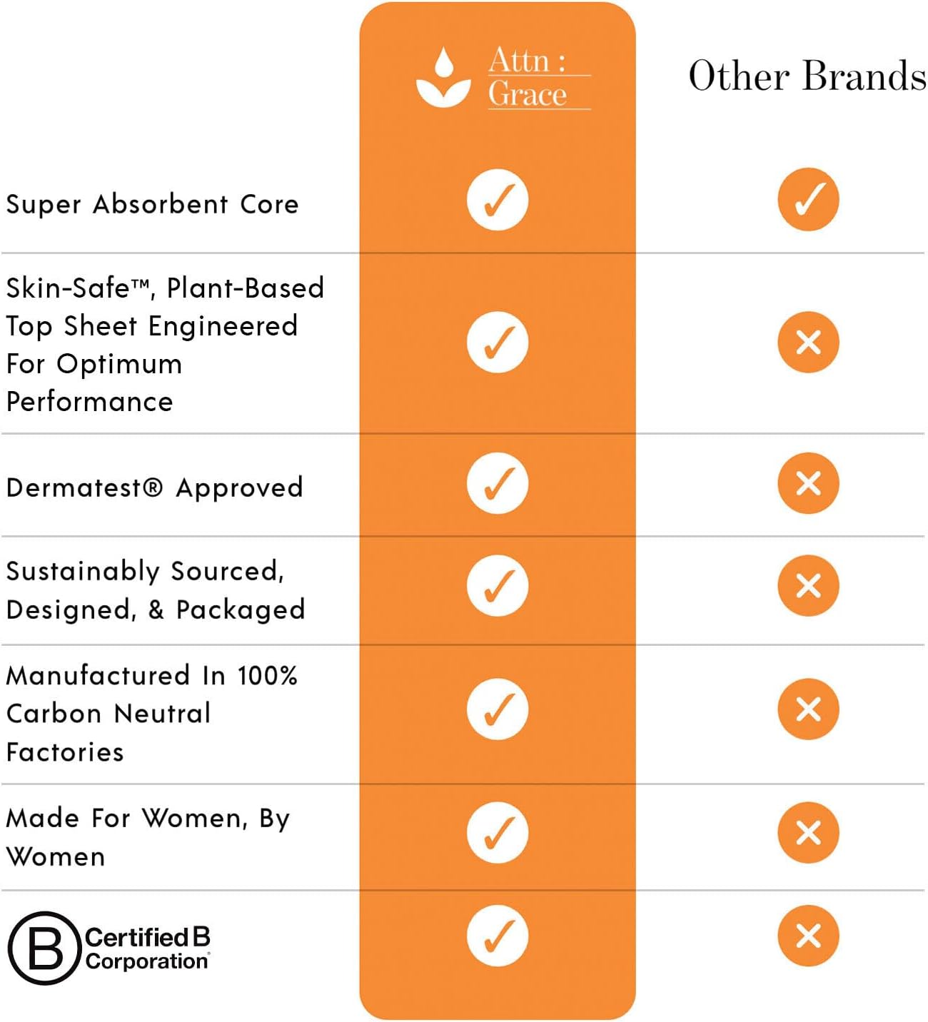 - Designed by Women, for Women: Attn: Grace is dedicated to supporting women managing bladder leaks, whatever your stage of life, with thoughtfully crafted personal care. Whether you need extra-heavy overnight protection, postpartum protection, discreet bladder leak pads, or breathable incontinence solutions, our plant-based products provide comfort, confidence, and care tailored to your needs.