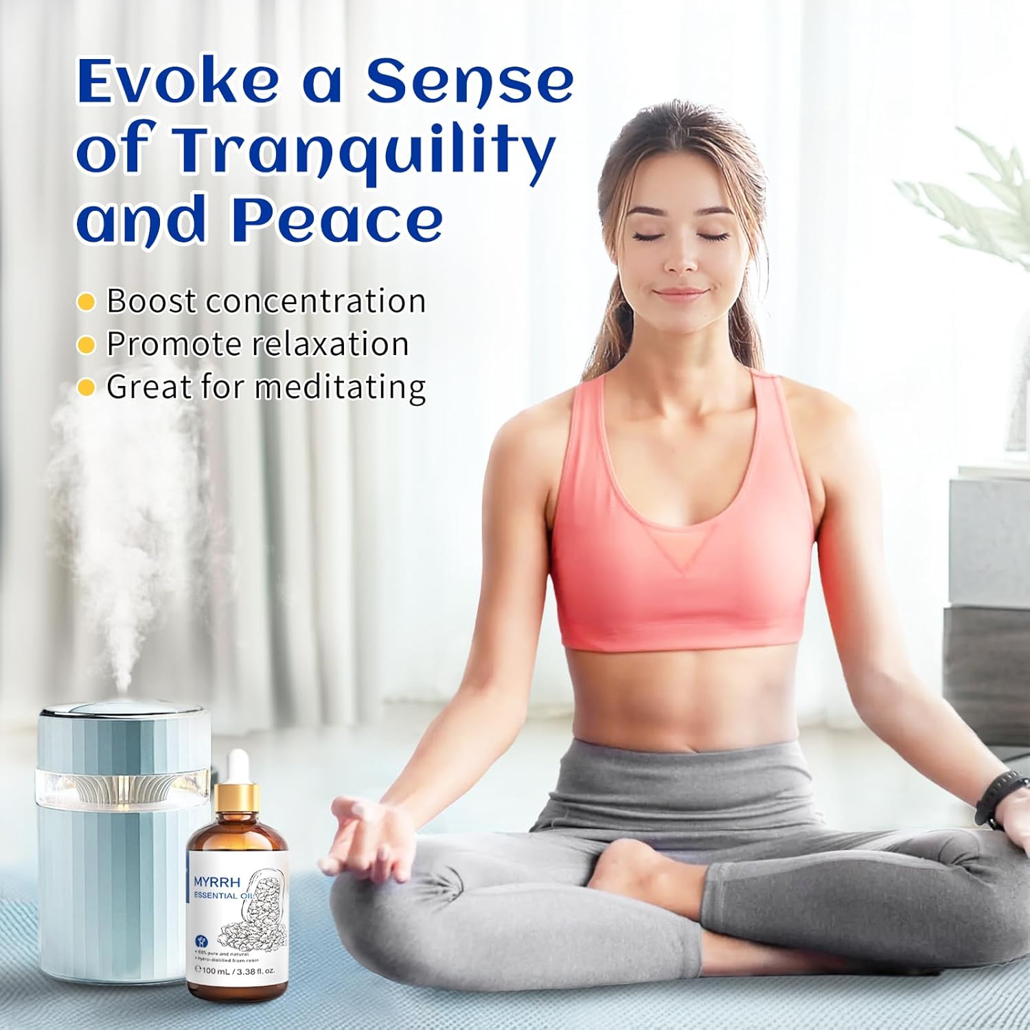HIQILI 100ML Myrrh Essential Oil for Skin, Diffuser & Candle, 100% Pure and Natural - 3.38 Fl Oz