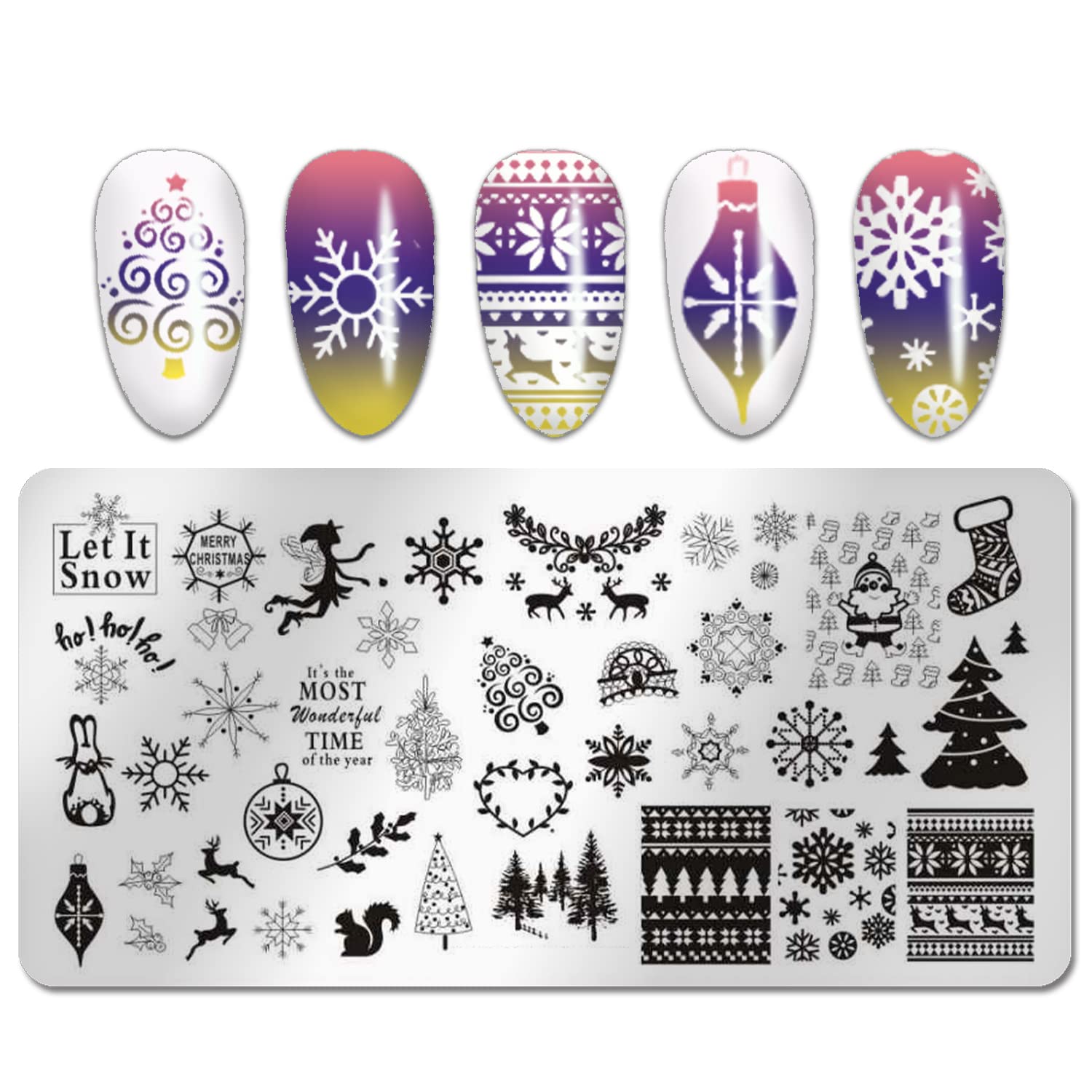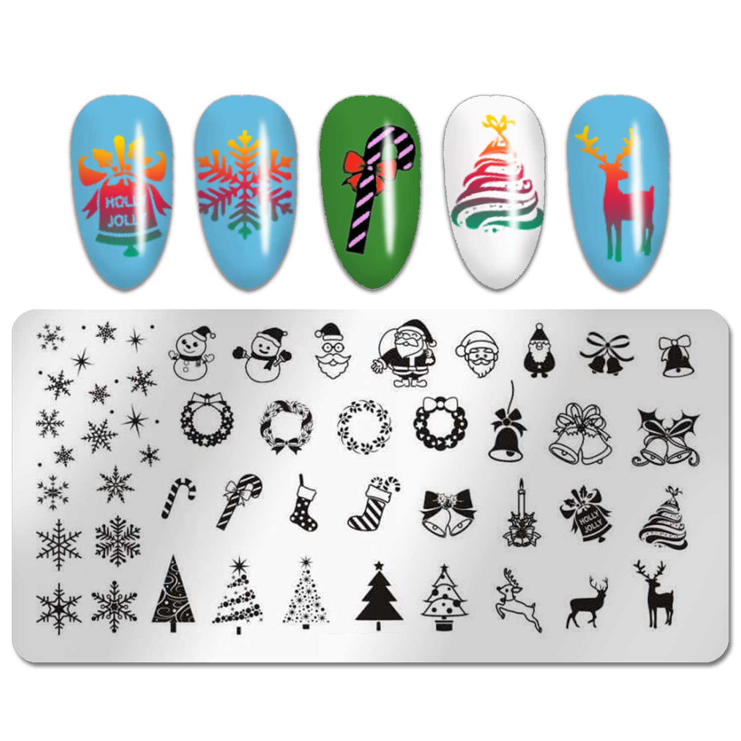 - 【Package Contents】6Pcs different designs nail art image plates.Each template contains various kinds of Christmas patterns, such as Santa Claus, Christmas Tree, Elk, Snow Flakes,etc.