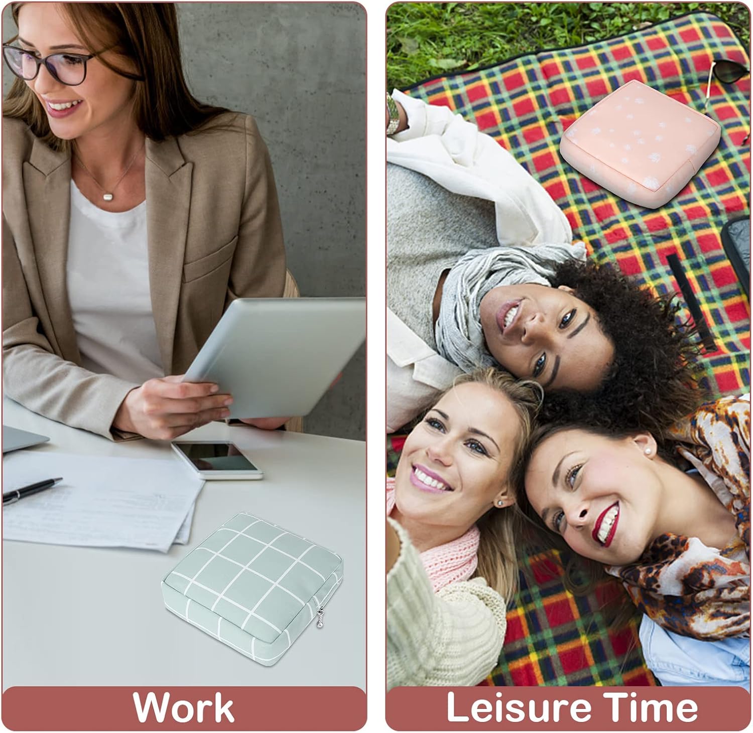 - 💕【Meet Your Day's Needs】- The size of the period pads bag is 5.1*5.1*1.6 inch, it can hold 6-10 pieces of normal size sanitary napkins. The compartment design inside the menstrual pad bag is easy to store tampons and Keep them clean and orderly. It can be easily put in your backpack or handbag.