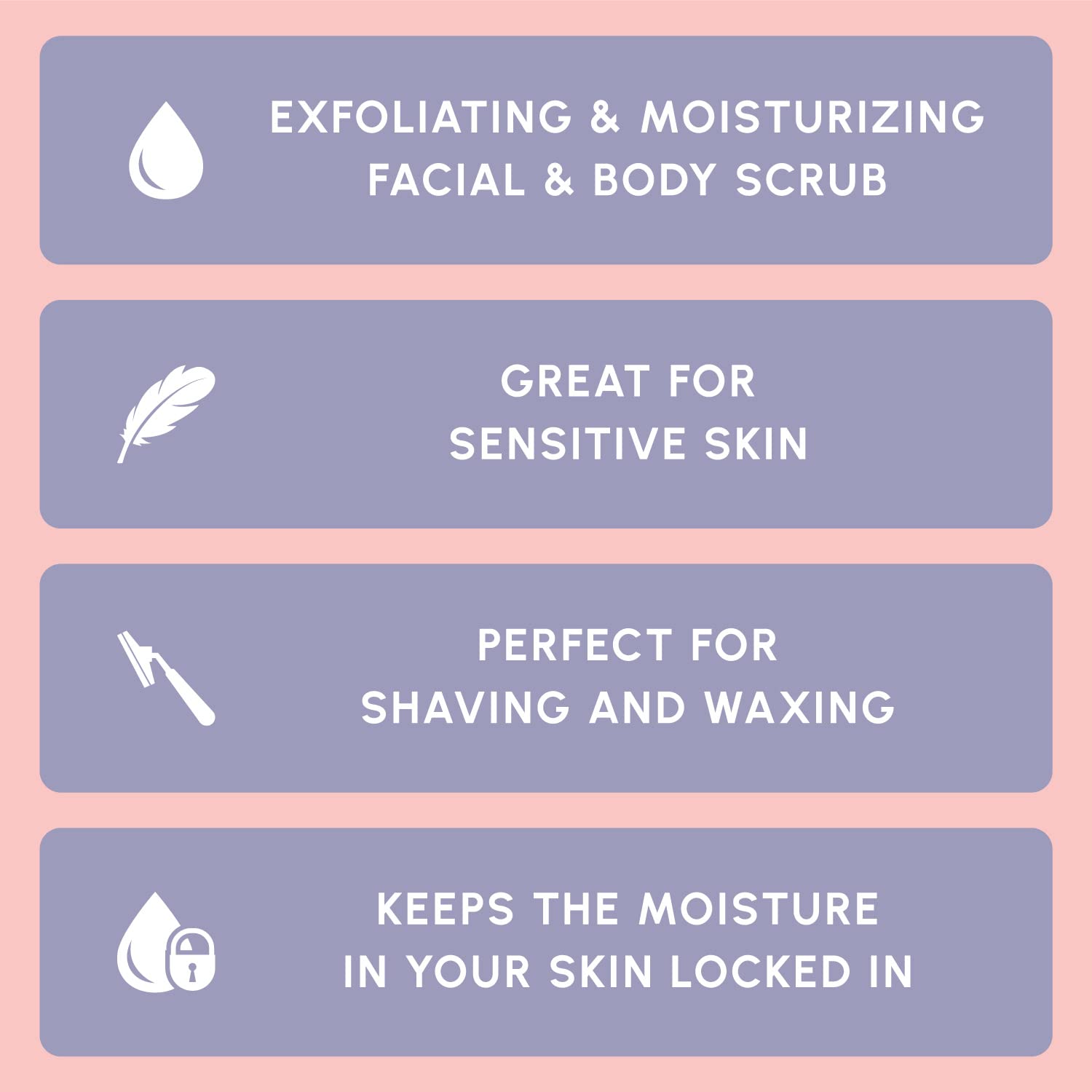 - SUITABLE FOR ALL SKIN TYPES – Our exfoliating body, foot, and hand scrub is recommended for oily skin, dry skin, and everything in between. Get healthy, glowing skin with this spa quality gentle exfoliating and moisturizing body scrub and hand scrub! Apply it to moistened skin and massage gently with your fingertips in a circular motion for around 5 minutes. Rinse thoroughly and pat dry.