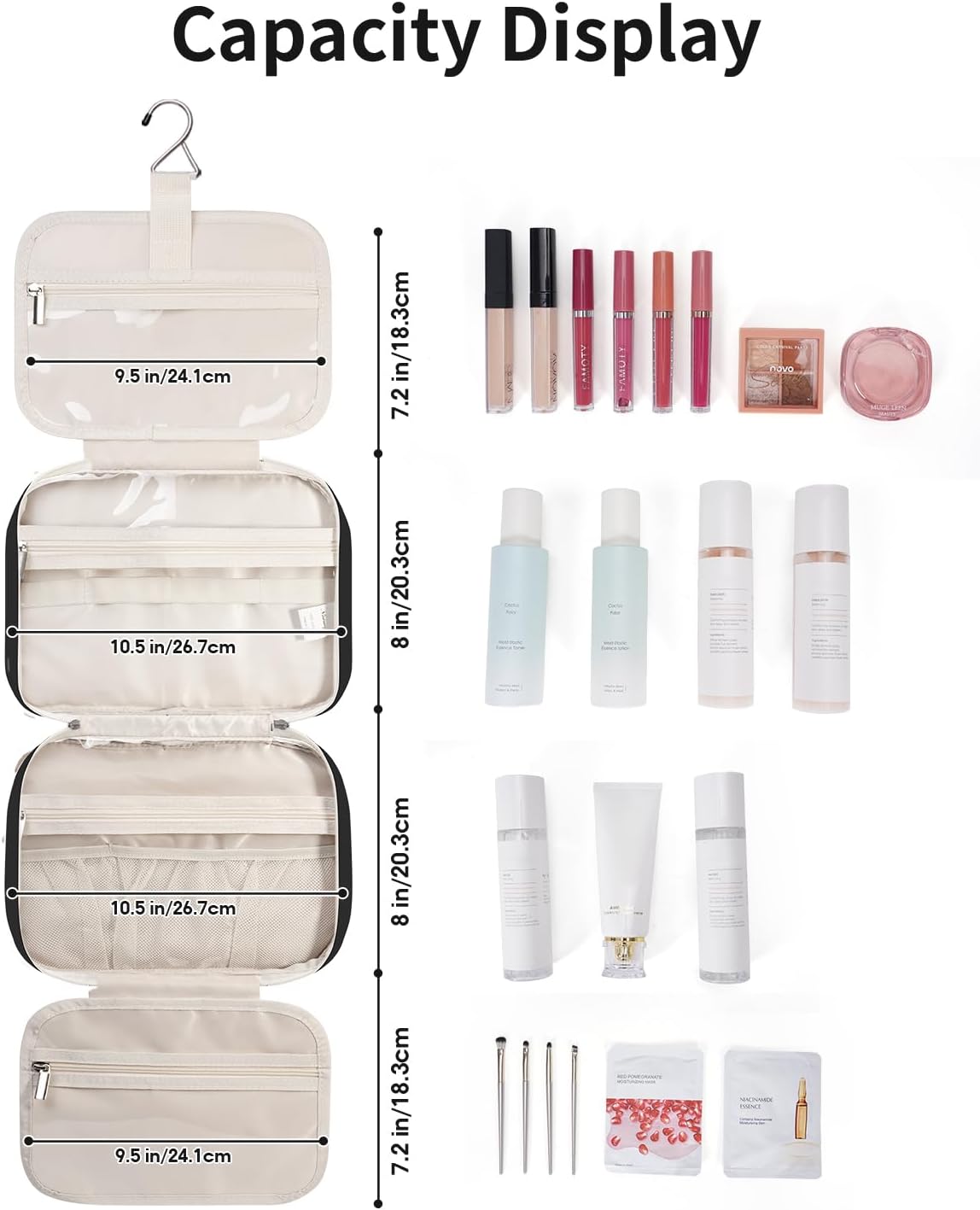 Narwey Hanging Toiletry Bag for Women Travel Makeup Bag Organizer Toiletries Bag for Travel Size Essentials Accessories Cosmetics (Black (Medium))