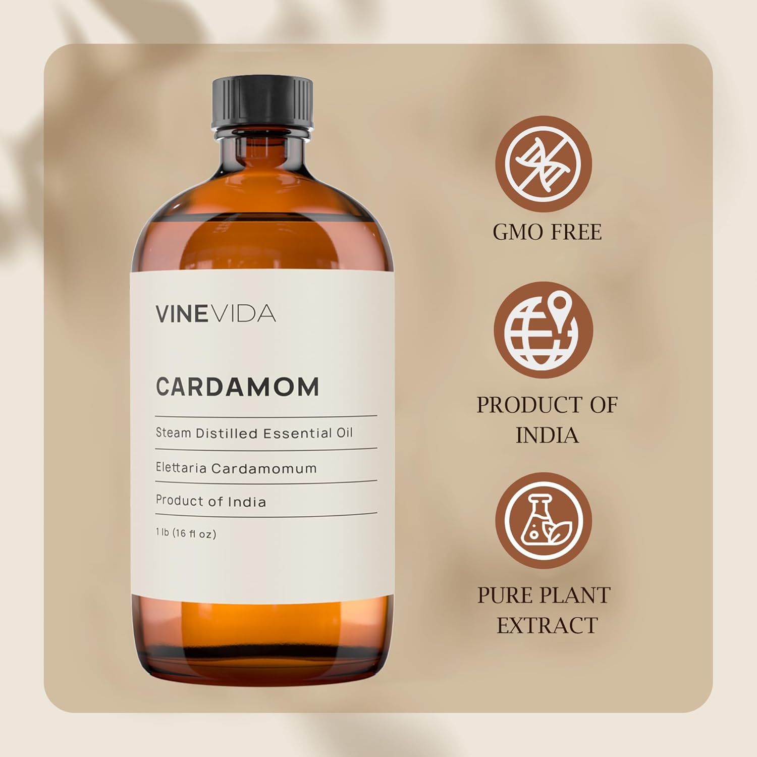 VINEVIDA Cardamom Essential Oil - 16 oz - Undiluted - DIY Candle Scents - Bulk for Soap Making & Skin Safe