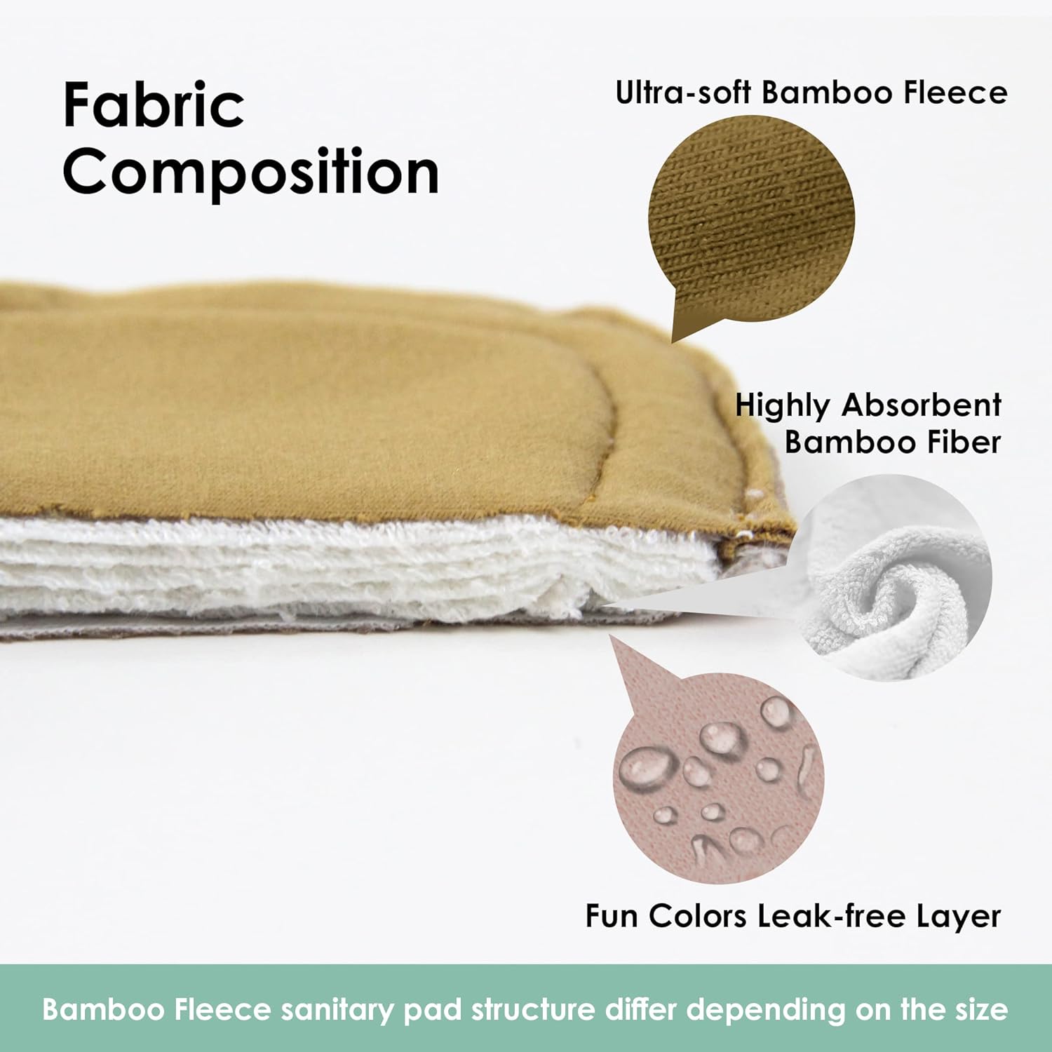 - Breathable Layer: Cloth panty liners structure differ depending on the size. Menstrual cloth pads Inner layer is ultra-soft fleece which lays against your skin, moistures wicking, and neutralizes odor. Lining layer is super-absorbent, and different sizes the layers are different. Outshell layer is leak-free TPU with backside silicon dot. The soft and gentle reusable sanitary pads offer great coverage and absorbency to keep you from leaks and spills.