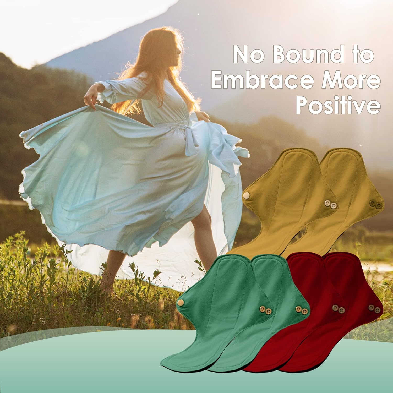 wegreeco 6 Pcs Reusable Menstrual Pads, Ultra Absorbent Cloth Pads for Heavy Flow, Sanitary for Teens, Women, Nonslip, Inner Aqua, Burgundy, Coffe, Rose Gold Outer, XS