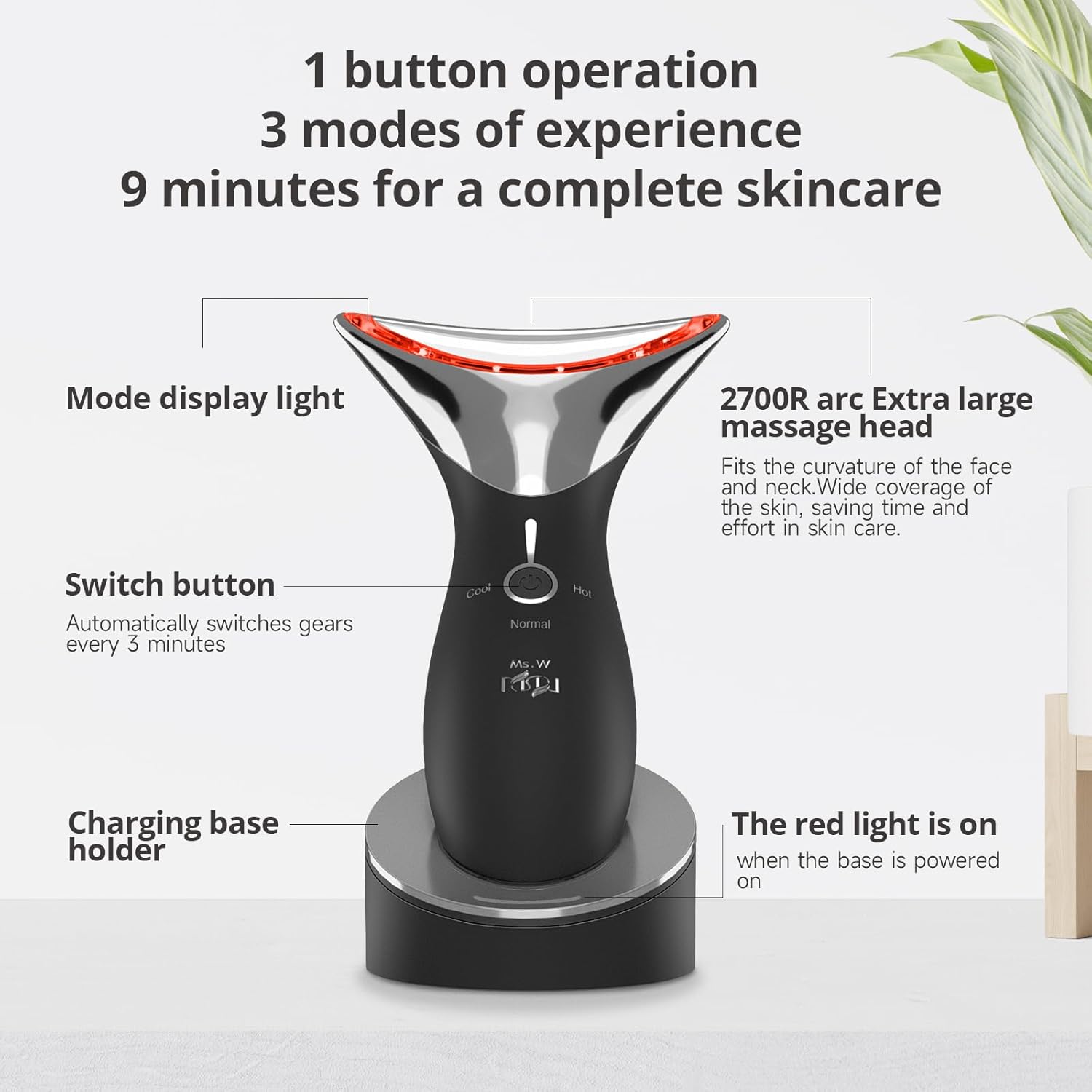 Ms.W Red Light Neck Face Massager, Facial Massager with Hot & Cold Modes for Skin Care, Vibration for Skin Tightening and Rejuvenation(Black)